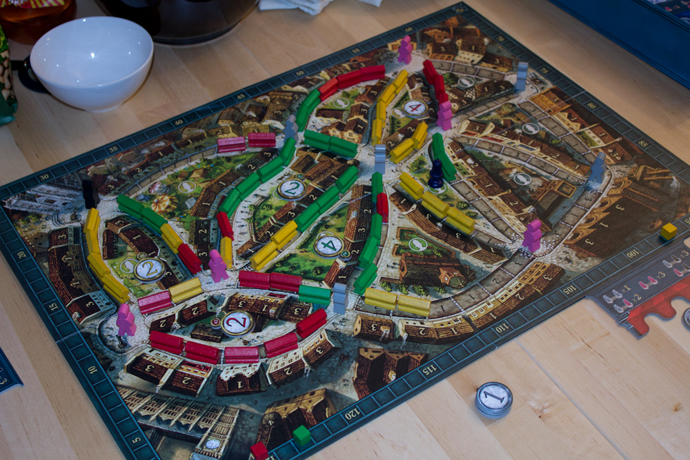 Men nå som Takras forstod reglene helt, måtte det bli en rematch. Spillet spilles meget kjapt og er en flott filler, så en omkamp er slettes ikke å forakte! Denne gangen ble spillet noe annerledes, og da Takras endelig forstod reglene, gikk det helt feil vei for ham. Saulius tok igjen og sørget for lange gater med hans vogner, men sikret seg også noen gode kunder. Dermed tok han ledelsen og seieren. Men! Vi hadde glemt å telle med poengene til den adelskunden! Fra å ligge som nummer 2, kunne Hollender hoppe rett forbi Saulius og ta seieren nok en gang denne kvelden!