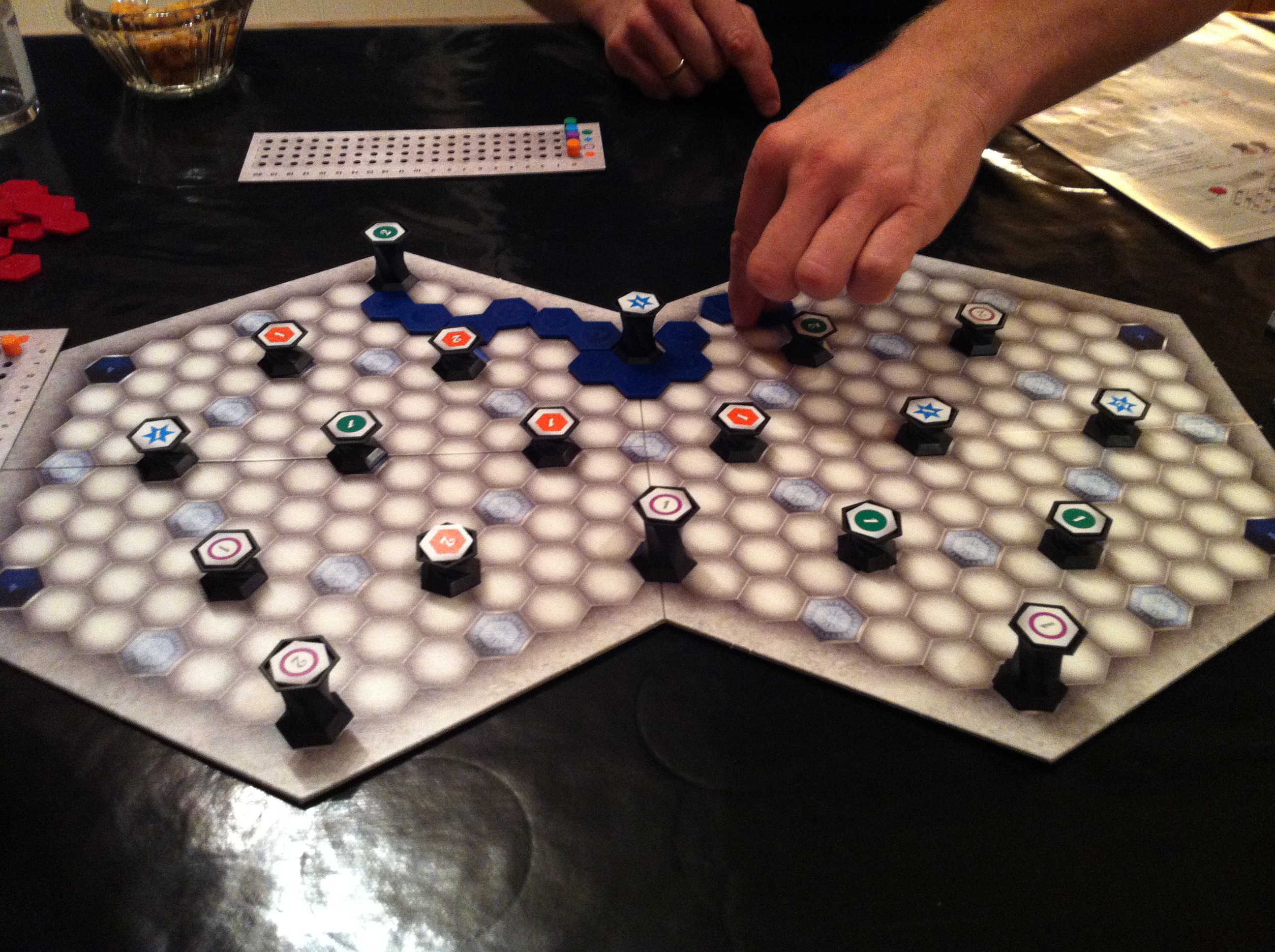 Fredelig start, og alle får jobbe litt fritt der de har valgt. Takras tok en tidlig offensiv mot Hollender bare for å sette i gang konflikt. Hollender tok seg ikke nær av dette og brukte sin alternative plan. Om kort tid hadde Sveinmain koblet sammen to store tårn og hevet 2 poeng per farge. Hollender fulgte fort etter. Takras ventet en stund før han fikk det til, men så gikk det greit. Sveinmain ofret seg for spillet, og hindret Hollender i å koble sammen 3 store tårn. Men Hollender ofret seg like etterpå, for nettopp det samme mot nettopp den brikken Sveinmain la. Selvoppofrelse betyr vel at man ikke gagner på det man gjør, Main? Ingen fikk lov til å koble 3 tårn. Sluttspurten var tett, men Takras hadde en ledelse med en på 12 poeng og resten på 13 eller høyere. Hollender hadde én på 11 og resten høyere og var den største konkurrenten. Men på siste brikke ble det valgfri farge, og Takras styrte seg opp til 13 poeng.