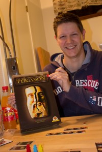 Kaoleena hadde som mål å knuse alle, med stor erfaring fra onlinestedet Yucata. Men som med mange gamblere er historien ofte trist, og hun vant aldri på denne taktikken. Det hendte en penge eller to fant veien, men det ble labert med utstillinger i museet. Hun var utstillingsløs. Takras hadde fått en god utstilling, og hadde en fin poengflyt, i tillegg til å ha den eldste blå krukken. Nils tok konseptet meget kjapt og viste sine Skillz, og hadde planen klar. Planen var god, men den kom for sent. Pergamon er et enkelt spill, men det er ikke alltid lett å se flyten før et par runder inn i spillet. Kaoleena måtte levere bilen og ble bort, men akkurat da kom Sveinmain og lærte spillet fortere enn han ønsket. Det ble en så stor lærestorm at det oppstod en tsunami på spillebrettet, vann sprutet over hele Sveinmain og på gulvet. Brikkene ble kjapt tatt hånd om og tørket umiddelbart. Det gikk tilsynelatende greit med hele affæren. Sveinmain innhentet etterslepet til Kaoleena, og doblet poengene fra 5 til 10. Men det var ikke nok til å ta en 3. plass. Nykommer og sørlending Nils kunne – i tradisjonen tro – vinne kveldens første spill så han blir huket. Har man først prøvet PG, så går man ikke tilbake.