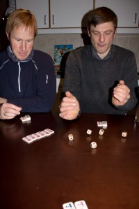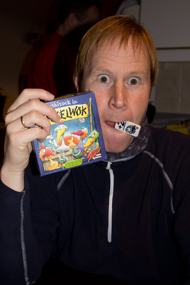 Vi tok en runde Sushizock am Gockelwok fra vår gode venn Knizia mens vi ventet på flere deltakere. Takras var godt i gang med regelforklaringen, og i mellomtiden kom Main. Han var eneste foruten Saulius, Black Ant og Kim som hadde spilt det før. Men han fikk med seg en ny regel: maks antall terningkast. Vi har nok vært altfor ivrige tidligere og gått etter «husk» fremfor regler. Vi spilte før med ubegrenset terningkast, så lenge man tok vare på minst én terning. Slik er det altså ikke.