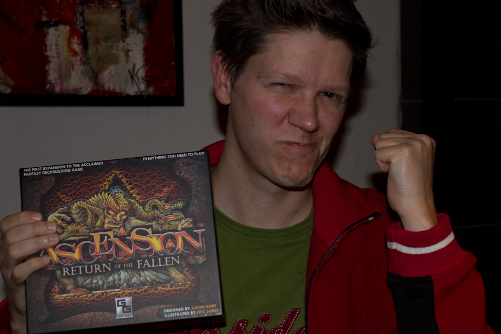 Absolutt ikke den beste starten for Takras denne mandagen! Bord 2 var nå ferdig med hjemmelaga brygg, og invaderte barskapet til Corporalen for å få relikvier til sauna-bilder. Siden sauna endelig var ferdig, var det muligheter til å rokkere rundt på ting. På bord 1 kom Ascension – Return of the fallen opp, sammen med blant annet The Rat King-promo. Flott deck-building spill med mye variasjon og uforutsigbarheter. Kjapt å lære seg og kjapt å spille. 1. Skillz på 67 poeng, 2. Takras på 52 poeng, 3. Pift på 48 poeng og 4. Corporalen på 45 poeng.