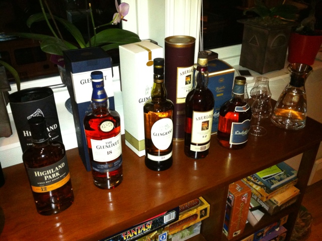 Innledningsvis ble det Glen Livet. Selveste Glen Livet, fra den første lisensierte whiskyprodusenten i Skottland. Nappetos kunnskap på området var meget bra, og videreformidlingen av historien var av ypperste klasse. Har man ikke kjennskap til smaking så får man det nå. Med litt bakgrunnshistorie og informasjon om hvorfor denne drikken skiller seg ut fra de andre, så er det mye enklere å gjenkjenne dens egenskaper. Det var aldeles fortreffende, og regelforklaringen kunne begynne, med ymse forskjeller fra vår forrige sesjon.