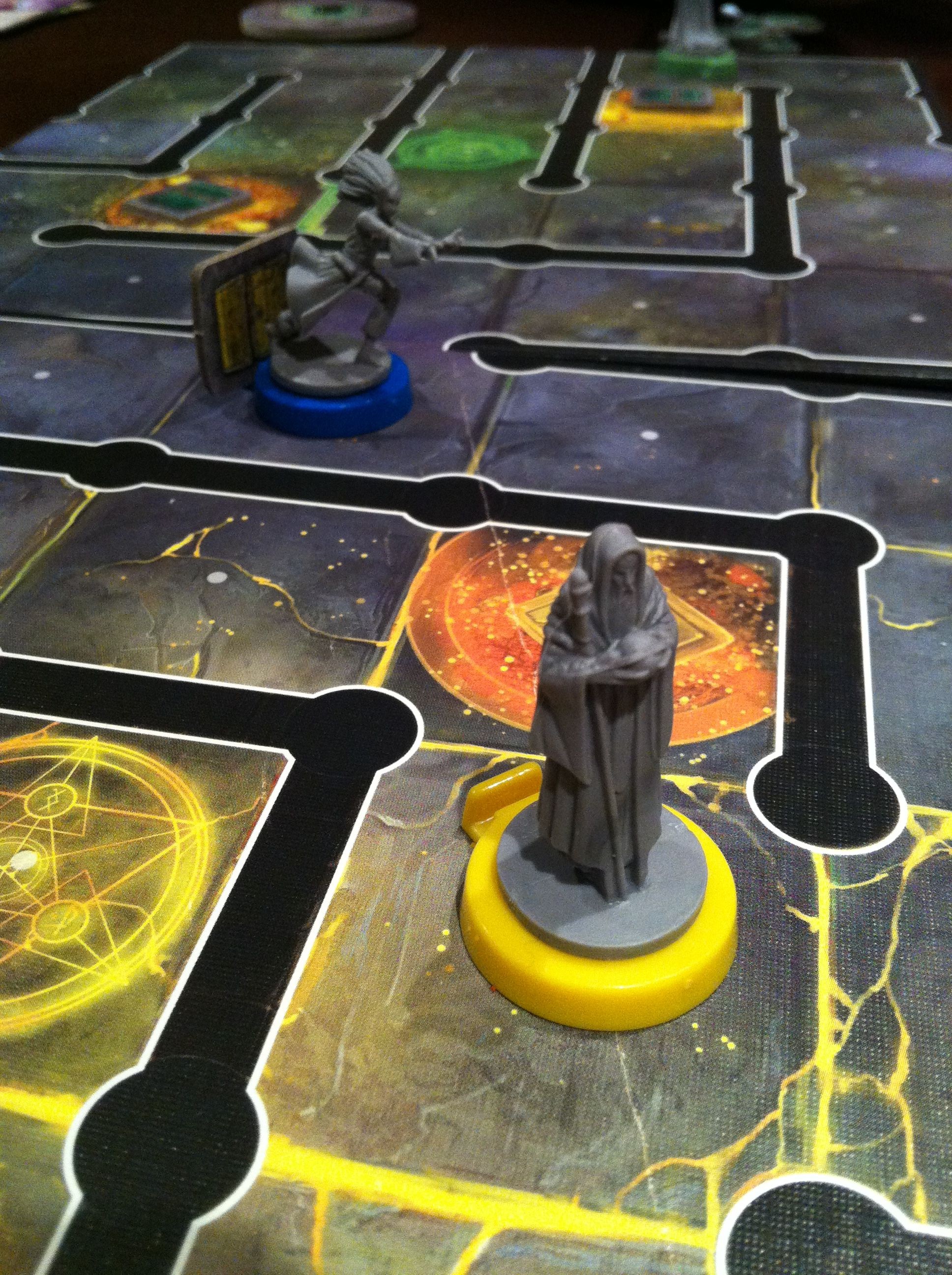 Sveinmain hadde søkt tilflukt sammen med Takras, hvor begge foretrekker annet enn Funkennicht. Corporalen hadde forberedt Wiz-War, den åttende utgaven. Med så mange reproduksjoner av et spill fra 80-tallet, så må det være bra! Akkurat som Monopol! Eller… Spillet så meget flott ut og viste et kompakt brett. Vi spiller en trollmann hver, og målet er å eliminere andre trollmenn og/eller skaffe seg skattene deres og bringe til eget område. Og som trollmenn så har man selvsagt masse magi! Fantasy Flight skuffer ikke her, og har lagt med nesten hundrevis av tokens å bruke i spillet. Brannvegger, steinvegger, ødelagt vegg, portal, gjenstander, trollmennmarkører og masse mer! Forventningene var gode, og forventningene var også at vi kom til å spille det feil, takket være tidligere erfaringer med deres regelhefter.