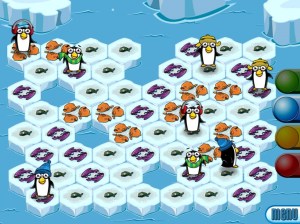 Som du ser på bildet så er det veldig lett å få oversikten. Fargene er sterke og gode, og det er lett å skille mellom brikkene. I tillegg så får du se en sterk rødfarge på de brikkene du har lov til å flytte til, og du kan se alle pingvinenes flyttemuligheter samtidig. Med få pingviner er dette lett. Utseendet er som sagt meget barnevennlig, og kan kanskje komme litt i veien for hvor flott dette spillet egentlig er. Jeg syns litt av sjarmen har forsvunnet fra det fysiske brettspillet til denne utgaven. Men selve kjernen er der fremdeles, og det er jo spillmekanismen.