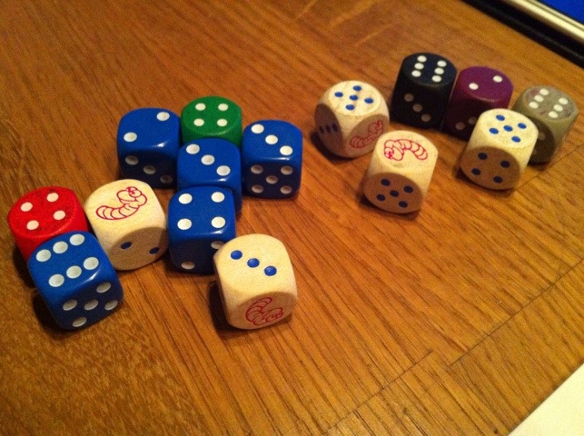Ikke en anmeldelse dette her, bare en kjapp oversikt over hva det handler om. Mener jeg gjorde det ganske klart at vi spilte med helt gale terninger, og ikke skrev om vi likte det eller ei? 🙂 Vi liker uansett å skrive om spill vi spiller. Spillskrinet har kontaktet Rio Grande, og de skal få sendt over nye terninger 🙂