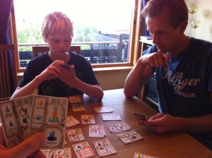 Spillet var i gang, og Hollender fikk begynne siden han var eldst. Alle tok poenget ganske kjapt, mens Alfred fokuserte på å bygge alt i en stor klynge med sine hus, uten at dette ga belønning. Ett av kortene var å score 3 poeng for alle hus, i den sonen man hadde minst hus i. Dette hadde Oscar en full taktikk for, og hadde minst 8 hus i hvert område. Men mot slutten ble han sett seg nødt til å spille utenfor sonene sine, og fikk bare 3 hus i den sonen. Hollender skjønte at Takras hadde tørrtrent, for Takras var i full fart å koble sammen byene, selv over vann. Og når ingen kunne ta båtbrikke nummer 2, hadde Takras enekontroll på sjøen. Derfor gjorde Hollender det han kunne for å forhindre Takras i å koble sammen byer, og med stor suksess. Her var det nemlig 4 poeng for hver by som ble koblet sammen. De fleste hadde 3 byer samlet, mens Alfred hadde sin ene midt i en klynge. Sluttellingen viste en lite overraskende fordeling. Takras, som hadde spilt det før, kom godt frem, mens Hollender lå ikke langt bak. Oscar kom med tilsvarende avstand bak der, og så var det Oscar til sist.