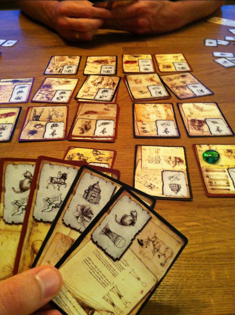 Det var dags for kveld, men en kjapp filler var ikke noe å fnyse av. The Enigma of Leonardo: Quintis Fontis. Et spill med et langt og forglemmelig navn, men det har satt sitt preg på PG fra før. Dette er en slags oppfølger, eller revidert utgave av spill med samme navn før kolonet. Er det noe bedre? Det skulle vi finne ut nå. Takras hadde tidligere spilt dette med Hollender og Anne-Marije, og det viste seg å være litt bedre. Men oppfølgeren tar – som Hollender presiserte under spillet – lengre tid. Så lang tid, at det finnes mange andre og bedre filler-spill der ute. Dette er ikke på nært dypt nok som man skal ha det til, og tiden som blir brukt på dette føles lang.