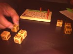 Avslutningsvis hadde Takras med seg Roll Through the Ages i tilfelle det ble tid til et kort spill, og det ble det jo. Kaoleena valgte å ikke være med på et terningsspill, mens Marog og Saulius fikk en innføring i spillet. Siden det er et abstrakt spill er det ikke alltid lett å vite hvordan man best forklarer reglene, men de ble fort forstått, og spillet satte i gang i løpet av 5-10 minutt. Saulius virket å forstå spillet veldig kjapt, og fikk sin første development tidlig, og hadde ingen hungersnød. Takras satset på arbeidere for å få nye terninger, men klarte ikke helt å nå målet sitt i starten. Marog prøvde som Takras og skaffet seg flere terninger til neste runde. Saulius brukte ikke mer tid på å skaffe seg terninger men heller ressurser til developments og monumenter. Han fikk fullført spillet meget tidlig ved å lære seg det 5. development, og så ut til å vinne her.