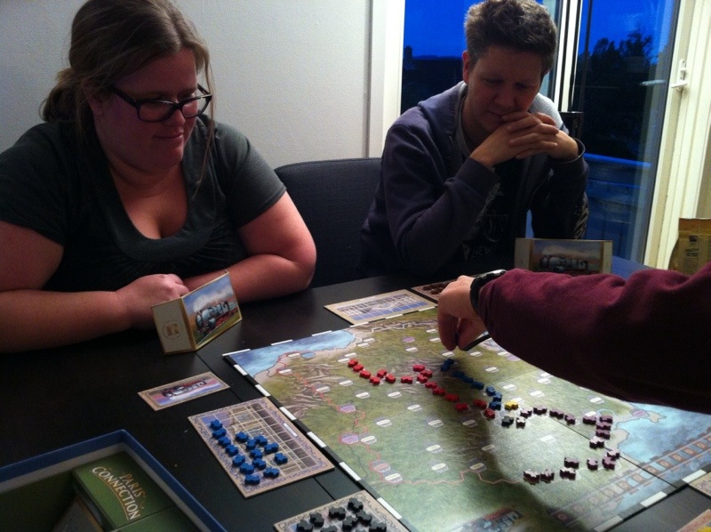 Sveinmain hadde tatt med Paris Connection, et enkelt men genialt spill hvor en skal bygge jernbaneruter i Frankrike med Paris som utgangspunkt. Skillz hadde vært der før, og de andre fikk en kjapp innføring. Kort fortalt skal en sette ut tog i en av de 6 fargene som kan øke selskapets verdi, eller trekke inn en aksje. Det røde selskapet føk tidlig avgårde og ble meget populært, og det tok ikke lang tid før det var tomt for røde tog. Men så begynte de andre fargene og eskalere og noen passerte de røde togene i verdi og dermed ble det ikke så kjekt å ha røde tog likevel. Skillz hadde god kontroll på feltet med mange tog i de mest verdifulle fargene og kunne dermed bygge, bare for å bygge uten poeng for de andre selskapene og så var spillet over og det ble telling. Skillz ble derfor togbaron i Paris, og kunne sende oss andre i Guilliotinen.