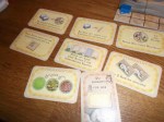 Når natten har kommet, er det tradisjonelt Dominion-time. Vi spilte først en runde med Dominion Hinterlands. Dette er en god utvidelse med mange interessante kort. Særlig Tunnel som gir Gold ved discard er spennende kort. Irene vant med 44 mot 34. Så ble det Dominion Cornucopia; her er det vanskelig å satse på gode kombinasjoner. Spillet er lagt opp for mangfoldets kvalitet. Uten andre dominion-spill kommer det noe sent i gang. Poengene kommer noe sent, men når de kommer kan det gå fort. Hollender vant med 34 mot 30. Det har blitt lite Dominion i PG det siste halvåret, så kanskje er dette en grei påminnelse. Klokken var langt over to og denne spillkvelden tok slutt.