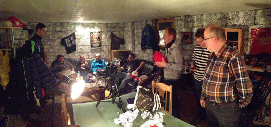 Årets kalender skal spilles inn, og derfor begynte en klokketime tidligere enn før! Vi regnet ikke med at så mange skulle dukke opp så tidlig som de gjorde, men det ble en knakende fin innspilling i kveld. Det ble rene køgåingen inn til Grotta, med hele 10 folk i kveld. Og hva er vel en bedre overgang til et spill enn køkjøring, når spillet handler nettopp om det?