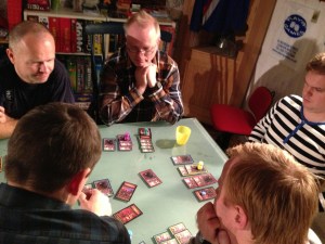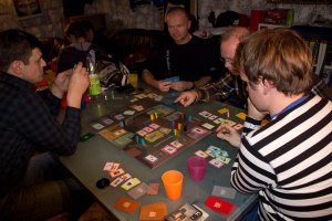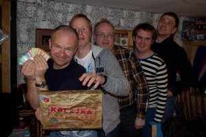Warzawapakten var det mange ulike køregler. Hadde du lånt naboens barn gikk du foran i køen. Var ikke partiboka i orden gikk du bakover. En kunne også snu køen pga. helt spesielle køregler ved enkelte butikker. 10 ulike kort med mye moro i alt hvor max 3 kort kunne spilles hver dag til hver spiller. Så var det bare å sette i gang. Black ant kom best ut tett fulgt av Peter. Saulius med erfaring på området slet og havnet stadig i feil kø. Det ble mye moro og mange rare ansiktsutrykk. Spesielt når det er knapphet på alle varer og alle har sin egen handleliste som de skal fullføre. Mye «backstabbing» skapte en enorm stemning rundt bordet. Torsdag i uke 2 kom avgjørelsen. Kiosken som hadde vært stengt nesten hele uka enten pga. varemangel eller pga. varetelling skulle endelig åpne. Ant spilte innside information kortet sitt og fikk hente en vare i kiosken før alle andre. Peter var parat til å kjøre ennå en varetelling men rakk det ikke og dermed fikk Black ant spise middag med Lech Walesa, mens vi andre måtte stå ute et par uker til… 1. Black ant, 2. Sveinmain, 3. Styrmann og Peter, 5. Saulius.