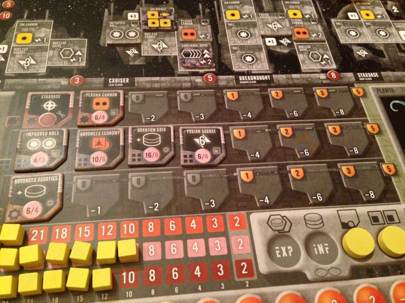 Stig satset på teknologi, og kunne forske på to ting samtidig. Det ble mye forskning, og han fikk selvsagt tilgang til mange rosa planeter tidlig. Han fikk opp sine skip utrolig fort i teknologi, og var en stor trussel. Men heldigvis hadde han en grusom produksjon på 3 poeng hver runde. Steinar hadde stålkontroll på spillet, og kjente til alle rasene, deres styrker og svakheter, og hadde spilt dette langt oftere enn meg. Det skulle han ikke sagt, da både Andreas og Stig gikk mot ham, som aldri tilbød allianser da anledningen bød seg, og var litt for selvsikker fra starten. Steinar fikk sterk motstand, mens jeg kunne holde meg for meg selv, og utforske mer og mer uten problem. Eneste punktet inn til meg var via «GCDF», og det ville jeg ikke åpne for, selv om det var for å stoppe Stig. Andreas holdt seg godt i skinnet, og motsto Steinar med sine svare romstasjoner. Det var mange spennende kamper. Jeg lå godt an med mine områder. og hadde god inntekt i penger og produksjon. Teknologi var så som så, men jeg klarte meg godt med det jeg hadde.
