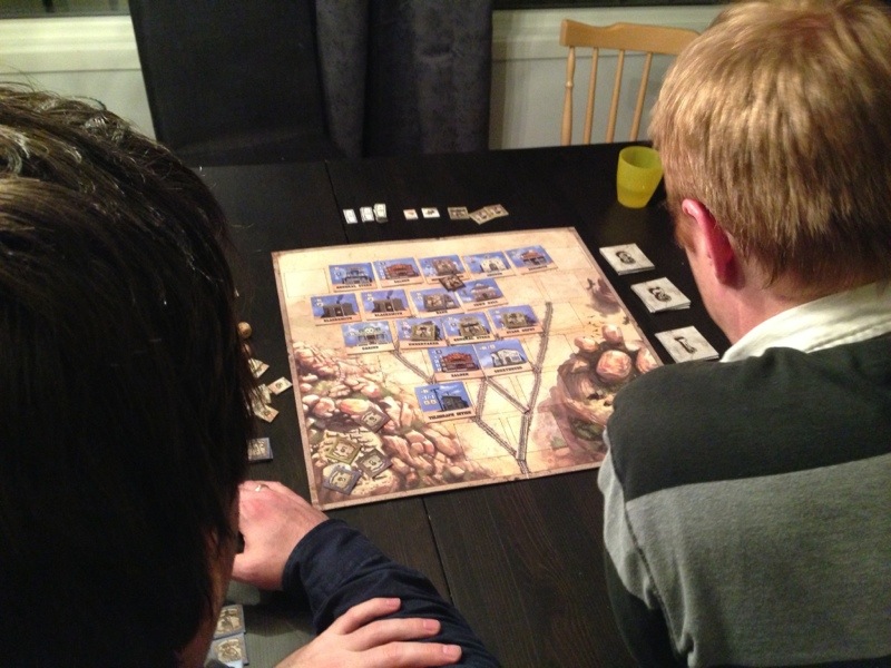 Kivi var på vei hjem, men kunne ikke motstå å bli med en tur til Deadwood først! I Deadwood skal vi prøve å bli den rikeste gangsteren i byen, uten å havne ved siden av Wild Bill Hickok og Calamity Jane på kirkegården Boot hill. Mange bygninger som gir fordeler skal inntas, men det er flere gangstere enn bygninger og da blir det dueller. Terninger og innflytelse avgjør, og selvsagt litt flaks er kjekt å ha med seg. Sveinmain ble vel den største duelltaperen i dette spillet. Han skjøt mest mot Kivi, og tapte de fleste gangene, mens Takras fikk stort sett gå i fred og nyte sine late dager i Deadwood. Da går det som det pleier i duellspill. Den som kriger minst vinner. Men hadde han det mest moro? Det sier historien ingenting om…