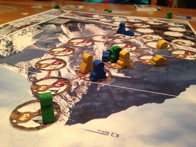 Et annet personlig ønske fra Alfred var K2. Dette måtte Oscar bare si nei til, da han ikke klarte å holde fingrene borte fra det flotte War of the Ring. I K2 valgte vi å spille med nødredningskortet, som gir oss et lite ekstraliv. Men med bekostning av poeng. Så ingen valgte å bruke det. Det var lite problemer med utslitte klatrere, men heller med plassen på toppen. Alfred og Takras holdt seg tett samlet og hindret Hollender å komme videre. Men Takras hindret også seg selv. Det ble en meget tett avslutning, og tie-breaker var nesten nødvendig.
