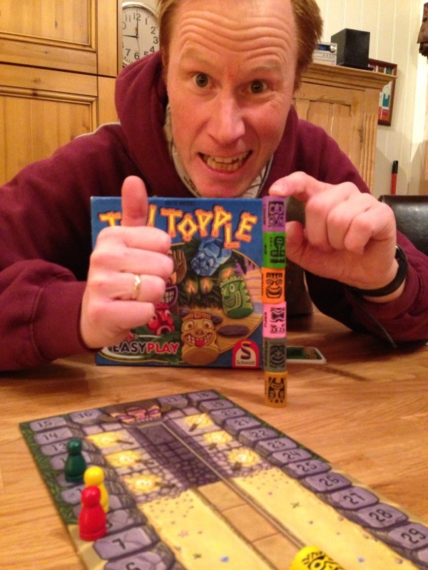 Hollender måtte bruke litt tid til å legge sine kjære, så Main fant fram Tiki Topple (som etter ryktene kommer på norsk i løpet av året). Det ble spilt noen runder med både bløffing, frustrasjon og en vinner (Sveinmain).