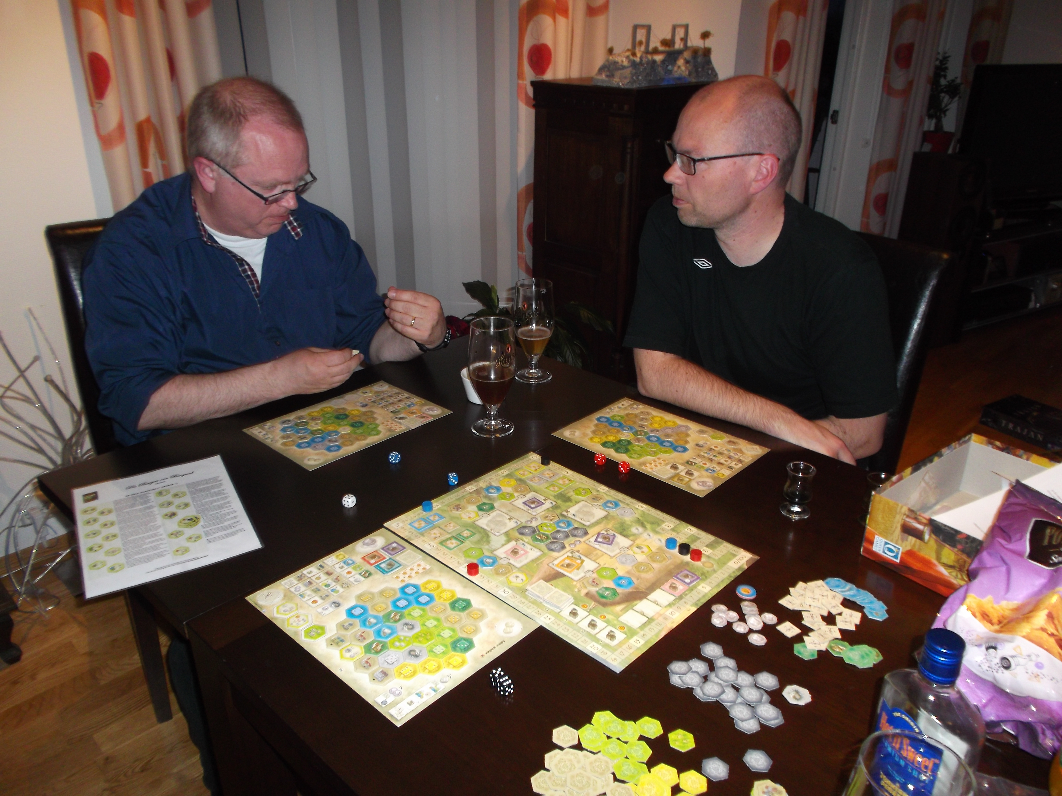 avlede og satte i gang poengsankingen. Peter ble startspiller og klarte å beholde denne fordelsmessige posisjonen resten av spillet. Peter hadde valgt et brett med mange små områder og tok en rask ledelse. Hollender og Robert hadde flere