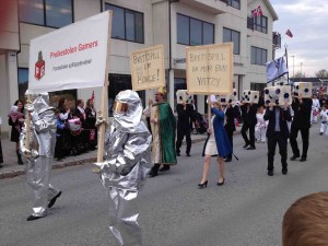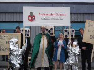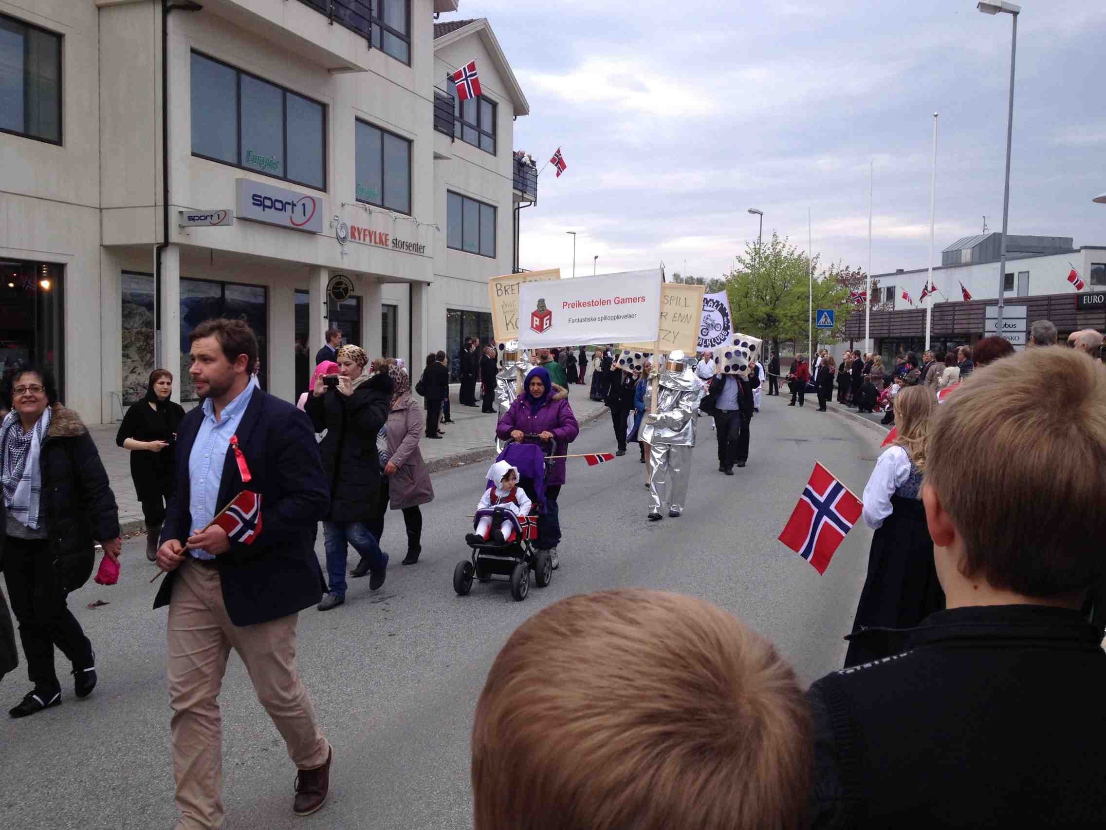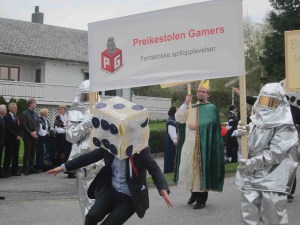 17. mai tog – og Preikestolen gamers. Kunne dette forenes? I mange år har vi i PG snakket om ideen om å delta i 17. mai-toget, men det hadde bare blitt med snakket. Peter meldte seg i år tidlig som leder for PGs 17. mai komite, uten at mye skjedde. Skulle det igjen bli bare med snakket?!? Men flere hadde tenkt samme tanken og etter en litt for lang spillkveld hos Hollender cirka 02.00 kom vi virkelig i det kreative hjørnet. Hvis vi skulle gå i tog skulle vi ha noe stilig som folk kjente seg igjen i. Sveinmain var inspirert av sine store idol Pet Shop Boys og foreslo noe de gjorde i Stavanger når de var der, sang med en kasse på hodet.