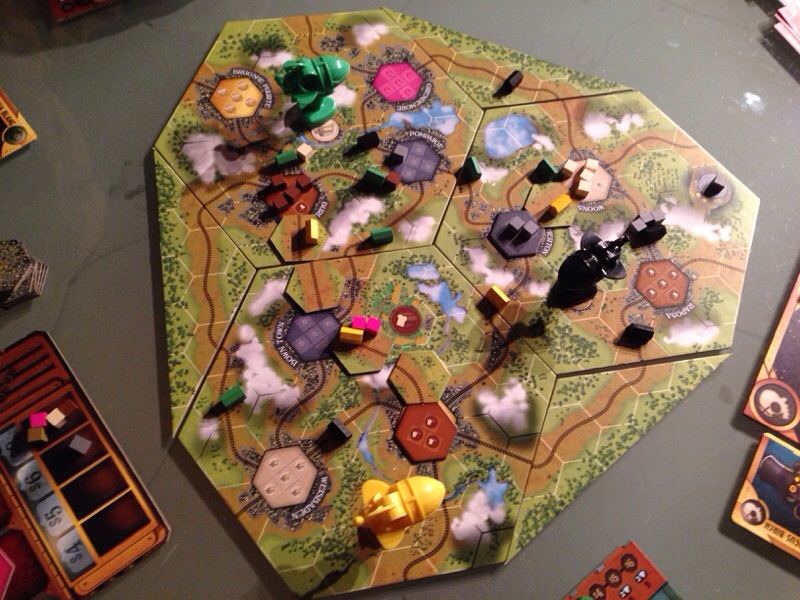 Et meget vakkert spill, med kjekk logistikk som gikk i 4 handlinger. De to/3 første ble brukt til å plukke opp og levere varer, mens den siste ble å posisjonere seg til neste runde. Må prøves igjen uten Cutthroat…