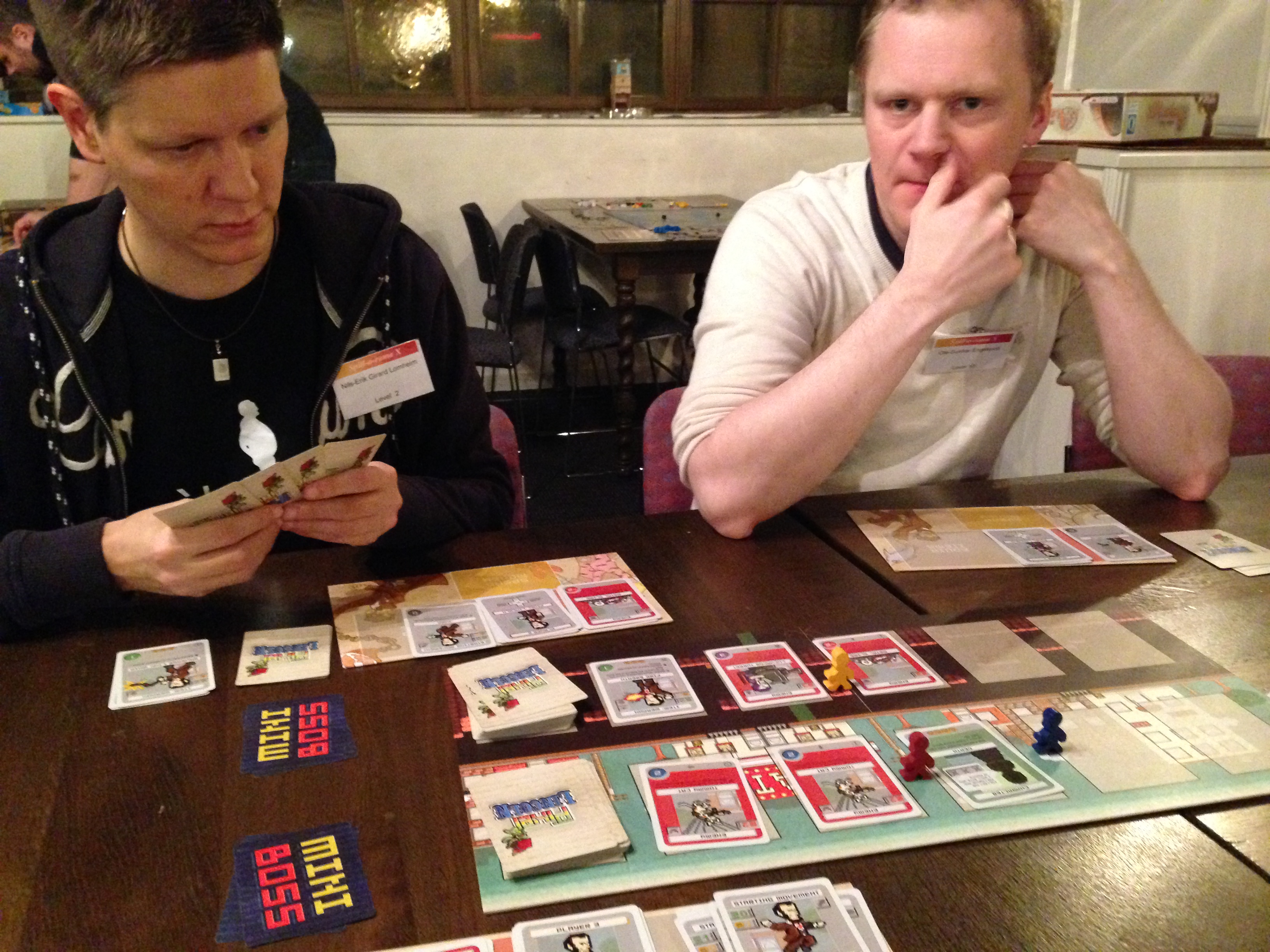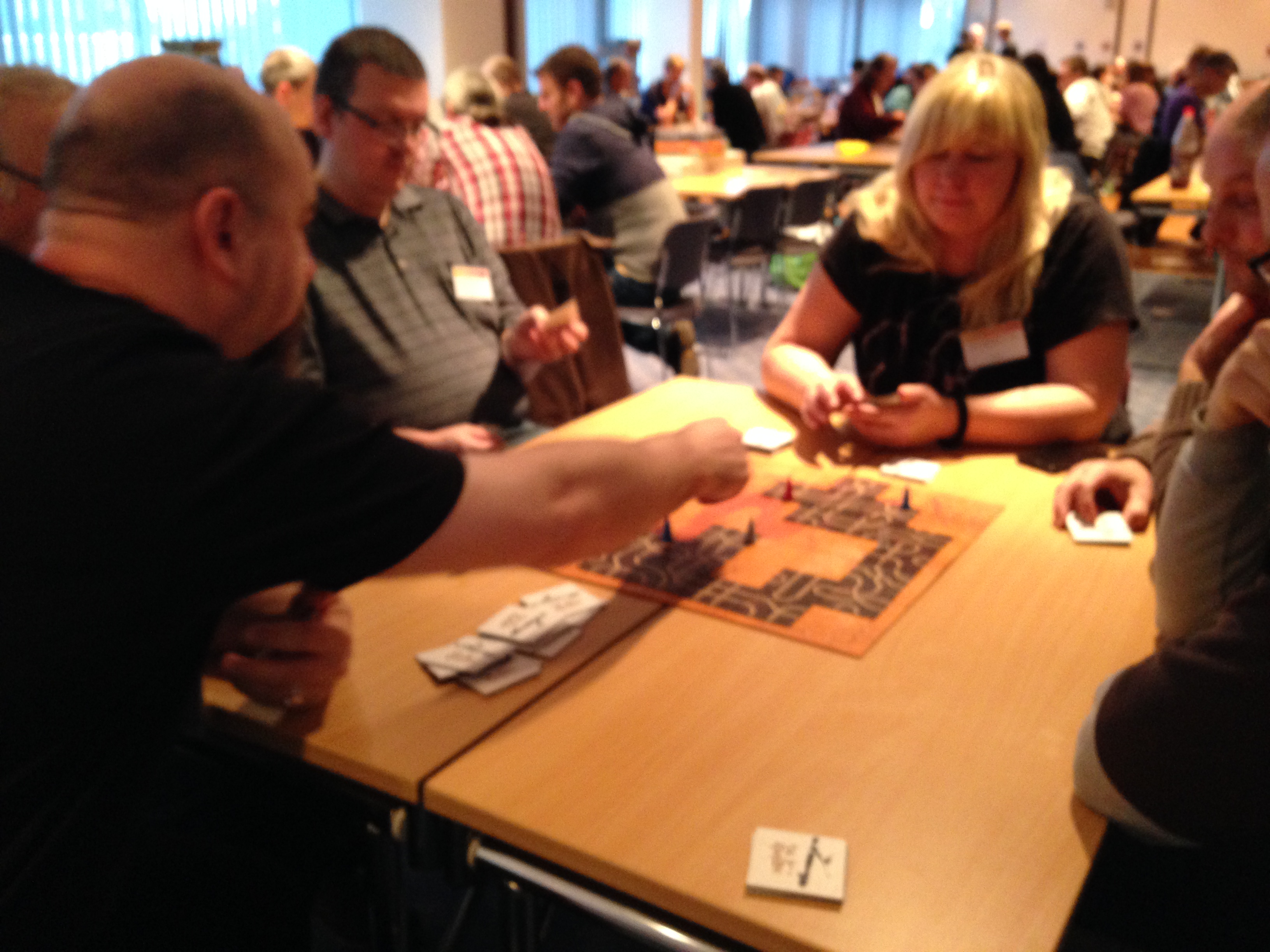 Det jeg liker best med Spill-o-Rama er at alle her er gamere, eller i det minste interessert i å lære og spille nye spill. Det betyr at regelforklaringene går fort unna og alle er tidlig i gang med å komme inn i rundene. Og for min del er det endelig godt å få reglene forklart for meg. Jeg er ofte den som forklarer regler (kanskje fordi jeg ofte får nye titler, hmmm). I tillegg er det få turneringer her, noe jeg liker godt. Da kan jeg fokusere på frispillingen og oppdage nye spill eller spille lengre spill uten å bli forstyrret – slik vi ble med Mansions of Madness.