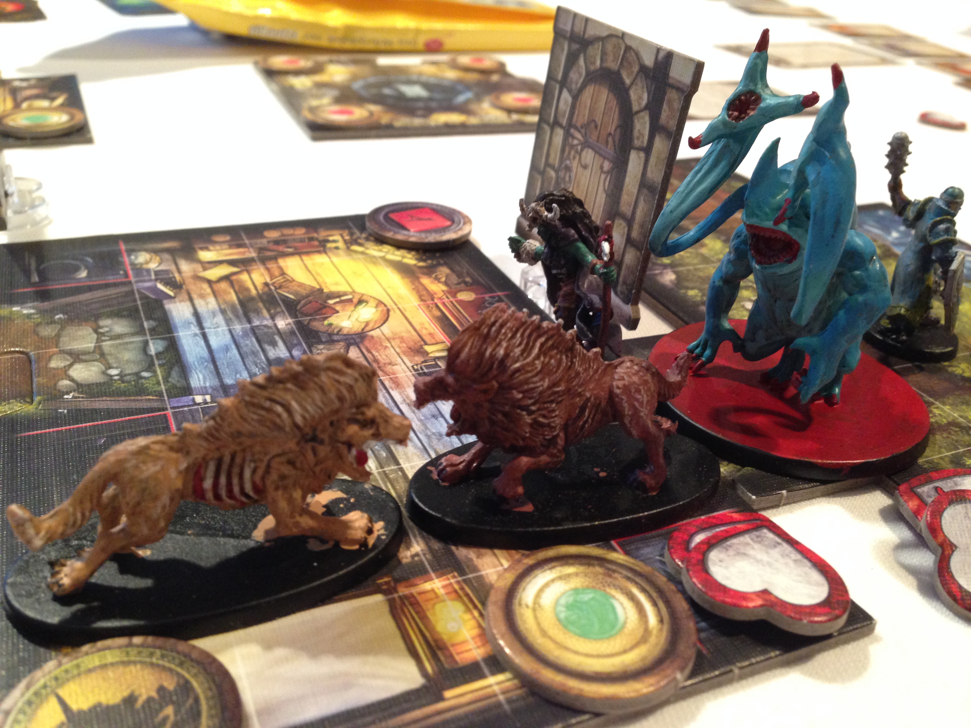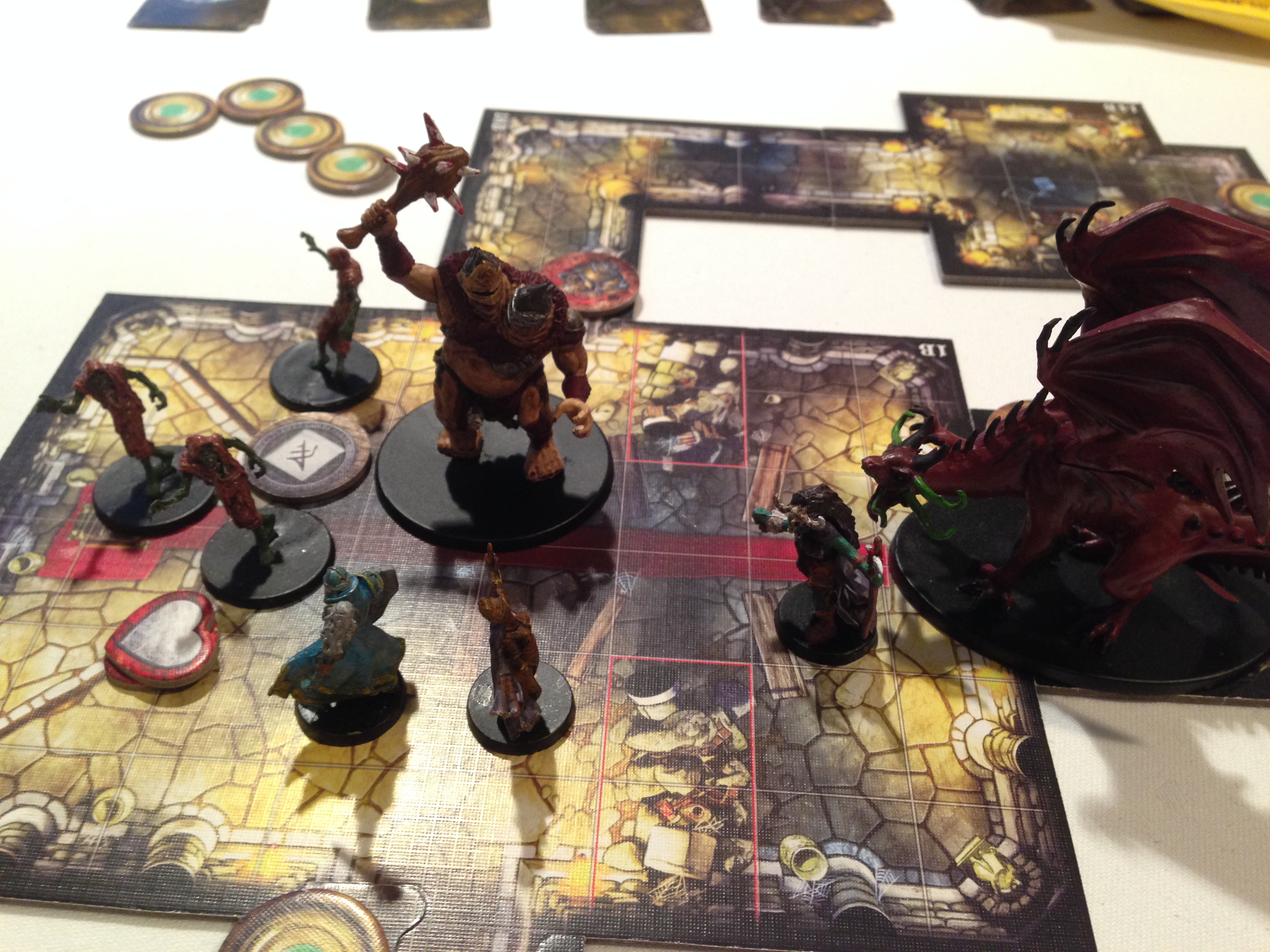 Mansions of Madness. Også et av mine ønsker for langhelgen. Hadde malt noen av figurene, men ikke alle, og selvsagt skulle scenariet bruke figurer jeg ikke hadde malt. Dårlig planlegging fra min side, men jeg ville også oppleve spillet som ferskt, selv om jeg var the Keeper. Dette har lik oppbygging som Descent, hvor heltene / etterforskerne slår seg sammen mot the Keeper / the Overlord. Jeg var ansvarlig for å stoppe de andre i å klare oppdraget. De visste bare at de skulle finne en person, men de visste ikke hvordan de kunne vinne scenariet. To av dem hadde spilt det før og visste litt hvordan de kunne vinne. Så jeg laget en avledning og tok en hudprøve av dem og beveget meg mot alteret. Det hadde ingenting med hva jeg skulle gjøre for å vinne, men avledningen virket. De fant omsider et hemmelig ord som åpnet den siste døren, og der fant de ut hva som hadde skjedd med han de skulle finne. Men takket være at en etterforsker døde så klarte jeg å plassere ham langt unna de sterkeste. De hadde bare to turer til på seg for å vinne, og det ville være helt umulig. Etterpå ble hele huset trekket ned i gjørma og alle døde. Utenom meg. Jeg vant.
