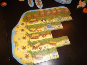 inn som joker (ekstra mynter). Gudebrikkene har spesielle egenskaper. Ellers skal man samle tiki for å sikre at bygdene dine blir scoret.