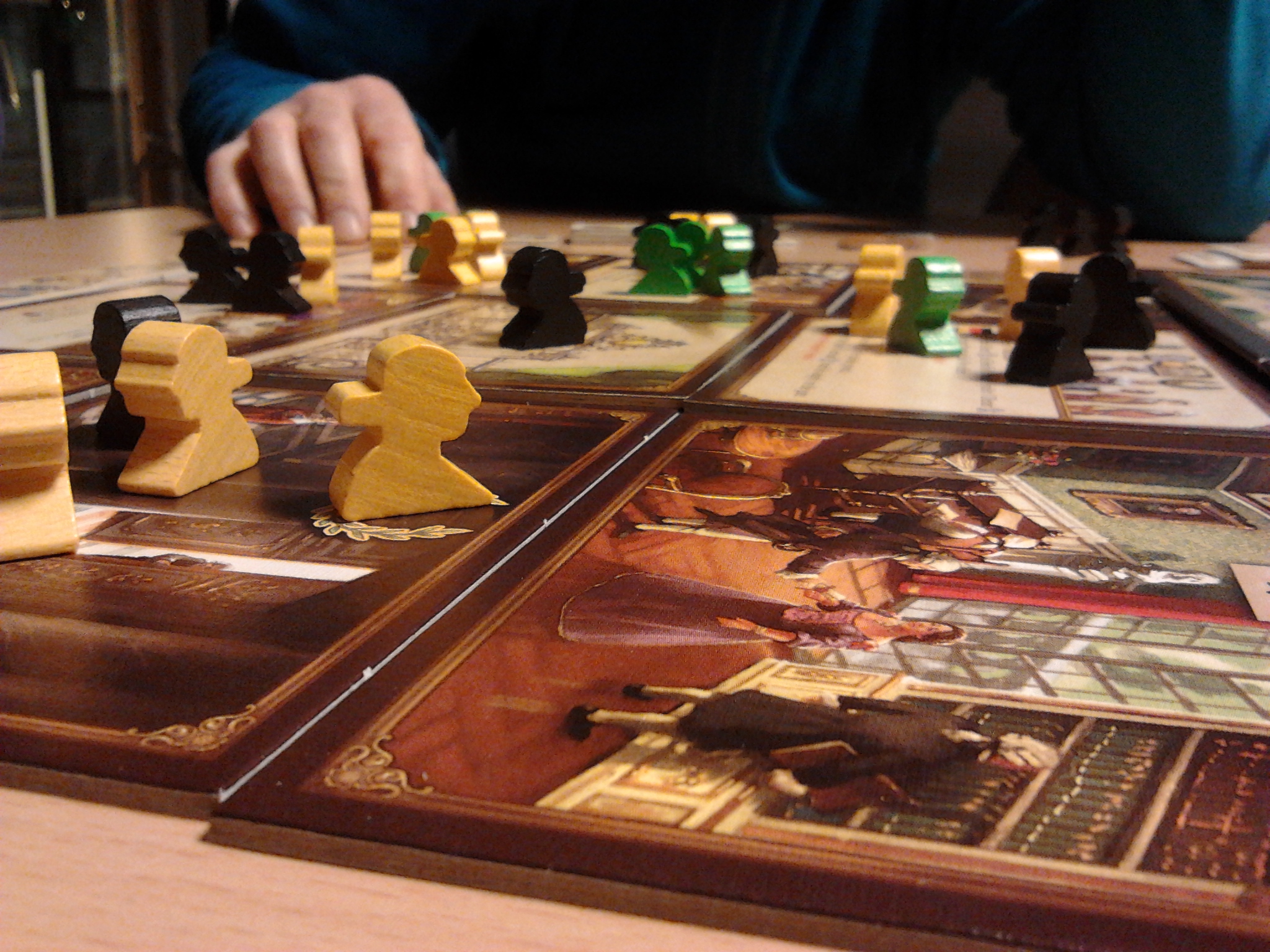 Endelig mandag igjen og en ny samling for spilletrengende i Torghuset, eller the royal palace of Jørpeland city som noen også kaller det. Noen hadde meldt sitt fravær men 3 sikre var allerede meldt, og 3 ble det. Peter, Black ant og Sveinmain skulle leke seg gjennom kvelden. Og siden vi var i Torghuset kunne vi like godt spille – ja – Royal Palace! I Palais Royal skal en skaffe seg innflytelse i palasset for igjen å bygge ut kongens park slik at den virkelig skulle skinne. Mange fiffige mekanismer i dette spillet, hvor en skal springe rundt fra rom til rom, hvis en har nok folk i trappen selvsagt. Har en folk på paradeplassen får en like mange inn i huset i neste runde. Derfor burde du ikke undervurdere disse plassene. I tillegg burde en være representert i mennenes og kvinnenes salong, samt myntverket, og når en også burde være på kontoret for å kunne få byggeoppdrag i parken blir det vanskelig å være alle plasser på en gang, spesielt når en har begrenset antall flytt, og etter hvert begrenset antall folk. Sveinmain gikk hardt ut og bygde i parken, langs kanten hvor en må sette ut en mann for å kunne få seierspoeng ved spillets slutt. Etter hvert måtte han begrense denne kantbyggingen da hans mannskap begynte å gå tomt. Men heldigvis kjempet Peter og Black ant om tie-breaker rommet, da den som har flertall i
