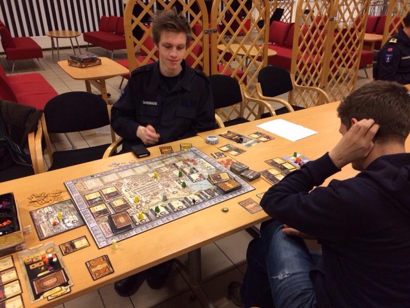 Det var igjen tid for PG å presentere den vidunderlige hobbyen vår for unge rekrutter. Orlogskaptein Kim hadde arrangert med pizza og planlagt de forskjellige spillene som skulle utøves denne dagen. Hovedrettene var Village og Funkenschlag/Power Grid, og det var obligatorisk å spille et av dem. Eller som vi sier: et privilegie.