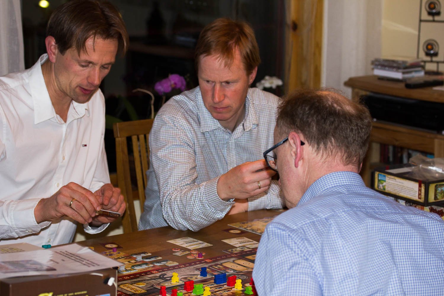 Flere spill ble nå spilt på ulike bord. Kåre hadde satt opp Dominant Species: The Card Game. Dette er et raskt kortspill med budrunder. Kaoleena og Hollender lærte det kjapt og det ble harde kamper om poengene, men til slutt er det som regelleseren som vinner (eller var mest heldig).