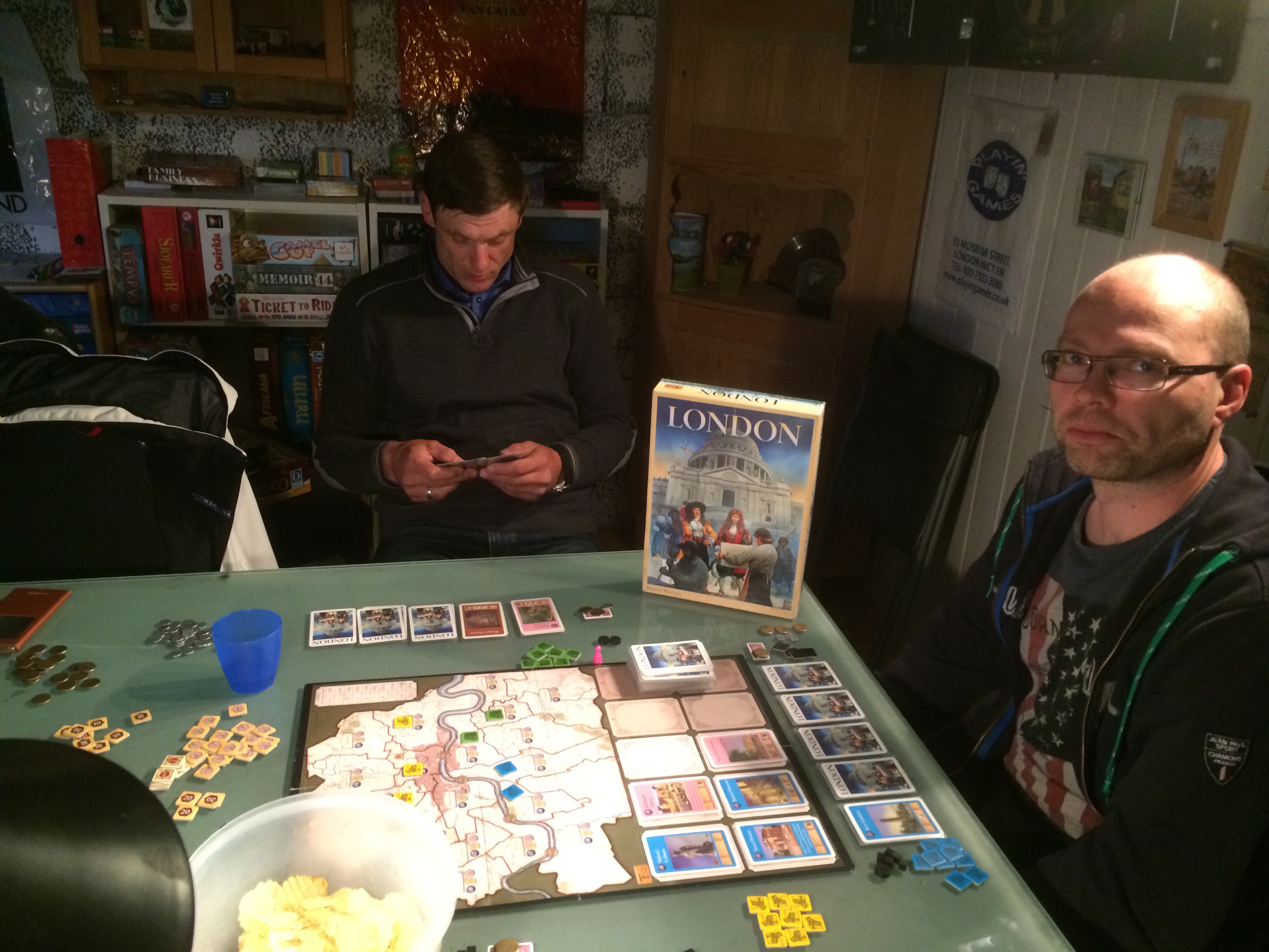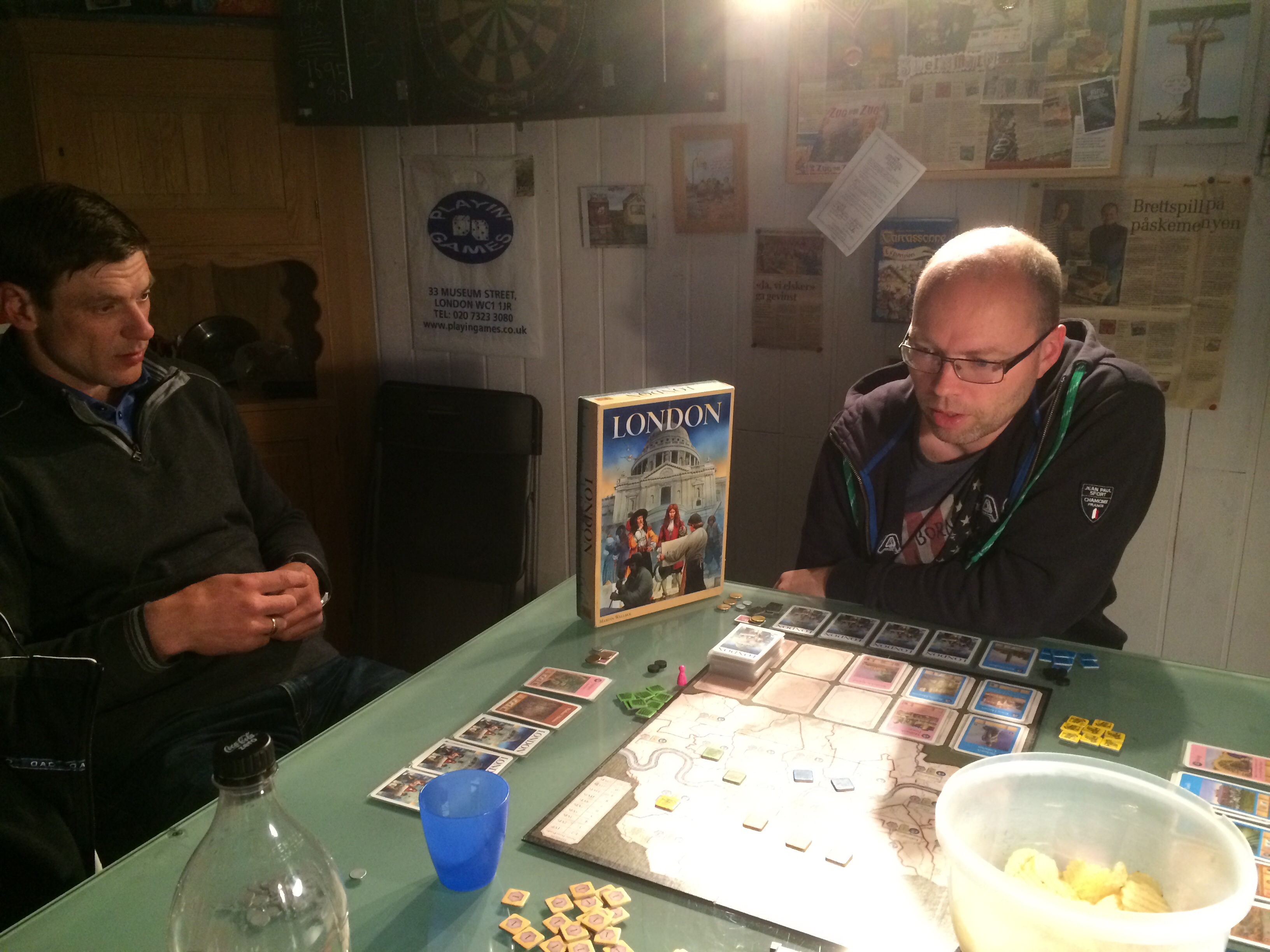 For å tilfredsstille trøtte pendlere, var oppstart rekordtidlig, kl. 19! Men kun Saulius dukket opp da, Sveinmain og Saulius ventet på Roberts ankomst før de satte i gang første spill, London, BGG rank 168 i følge Robert som var førstereisgutt og hevdet som vanlig at han var dårlig i nye spill…