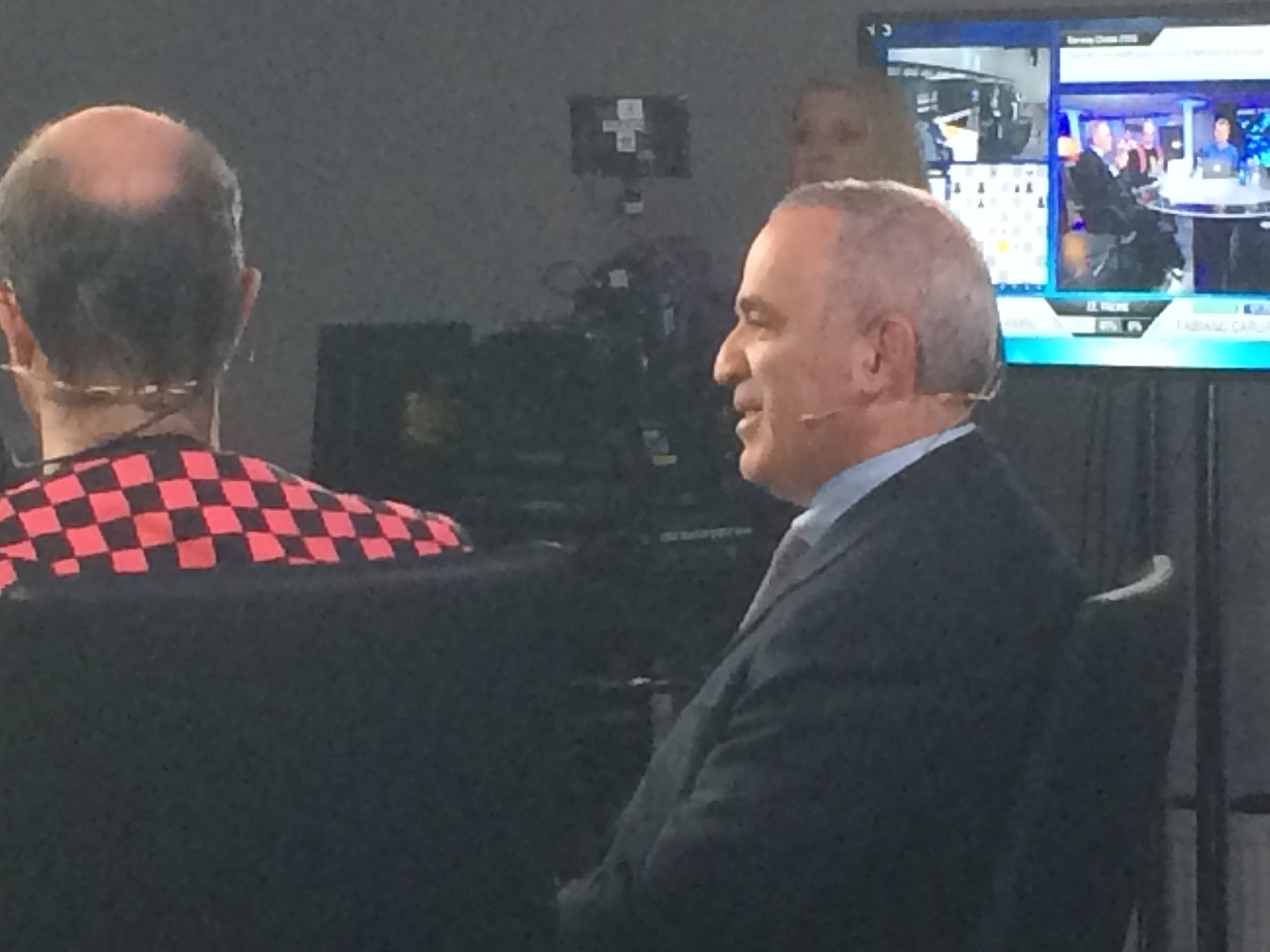 Vi gikk selvsagt glipp av en del trekk og glemte oss ut, men det gjorde John Ludvig Hammer også i sitt parti. Vi våknet kjapt av dvalen da denne mannen dukket opp foran øynene på oss, sjakk-kongen over alle sjakk-konger, Garry Kasparov.
