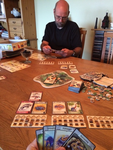 Hollender tok en liten pause da Evolution kom på bordet, men Oscar og Mark var ivrige til å spille det. Kort som gir dyr nye egenskaper og angriper andre. Mye tautrekking, men til slutt dreier alt seg om poeng. Det ble rekord mye tilgjengelig mat denne gangen. Takras vant som forventet, men med en rekordsum på langt over 100 poeng. Dobbelt så mye som Oscar og Mark som vant sølv og bronse.