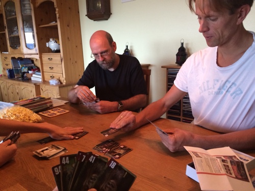 Mark og Oscar hadde også kommet og neste spill var et kortspill med samarbeidsfaktor; The Game, «spiel so lange du kannst». Uten å gi hverandre direkte hint skulle man som team kvitte seg med mest mulig kort. Spillet minnet litt om hanabi. Meget enkelt og av og til frustrerende når man må ofre en bunke, men plutselig reddet en medspiller spillet igjen. Teamet klarte oppgaven og hadde bare noen få kort igjen.