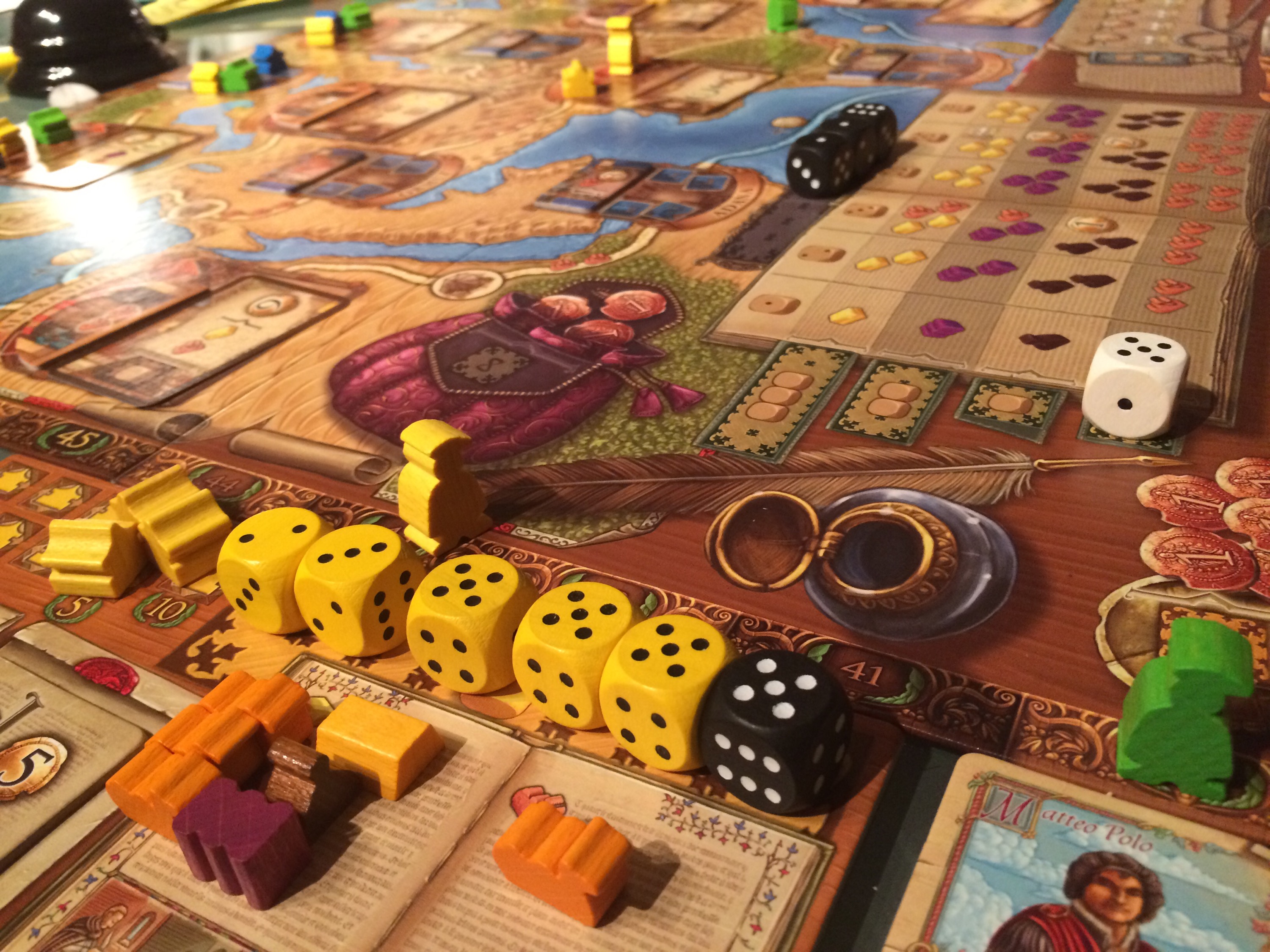 viktig å kunne starte og så plukke opp noen bonuser. Men som i så mange andre gode spill, trenger man egentlig alt og det medfører dilemmaer. Marco Polo spilles lett og fort og etter fem runder var spillet omme. Robert ledet etter den femte runden på grunn av alle fullførte kontrakter. Hollender lå et lite stykke bak og Kjell Henrik hadde kommet litt på etterskudd. Robert fikk 7 bonuspoeng for flest fullførte kontrakter, men han hadde bare 3 poeng for to oppnådde byer. Hollender hadde full pott på reisene sine og fikk 18 poeng og passerte Robert på målstreken. Kjell Henrik vil komme sterkt tilbake i en ny omgang. Marco Polo ble svært godt likt (igjen).