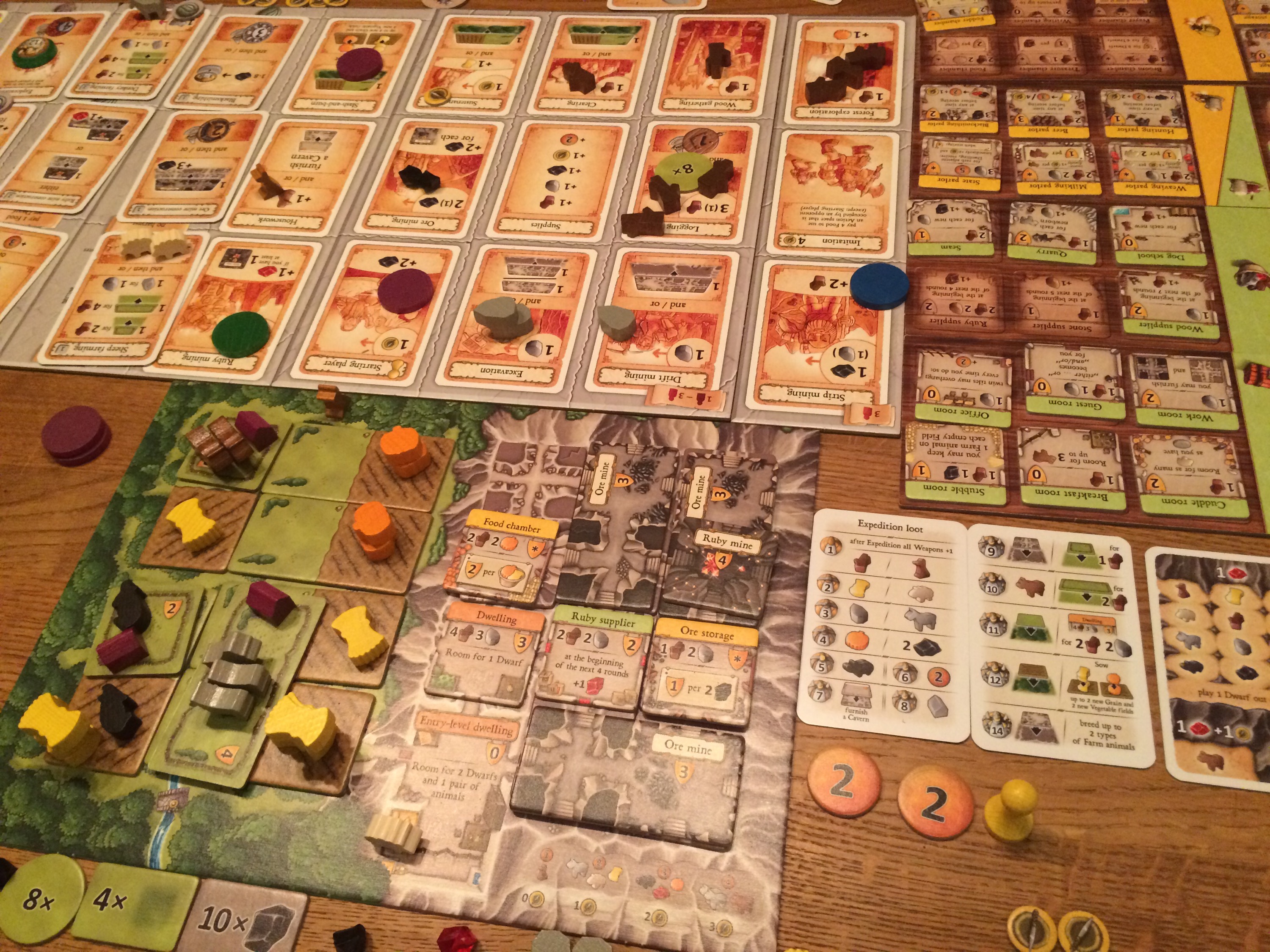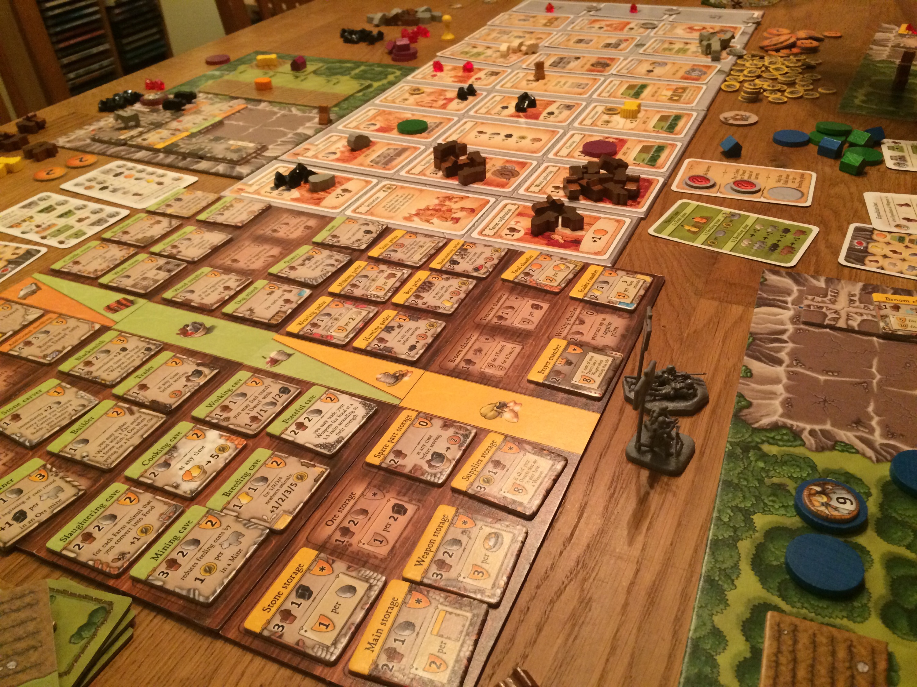Pift glemte dette to ganger og da blir det noen minuspoeng. Men i motsetning til Agricola kan man lett hente det inn igjen. Oscar bygget et rom som ville gi ham poeng hvis ingen av dverger hadde våpen, men han hadde fortsatt en med våpen. Det Hollender og Pift ikke hadde lagt merke til var at han også hadde et rom hvor man kunne selge våpen for mat. Dermed fikk han nok mat de siste rundene, mens særlig Pift slet. Oscar hadde også et rom som berget ham for minuspoeng. Hollender hadde hele 38 ore som gav ham 19 poeng, mens Oscar fikk 16 for sine rubiner. Det ble en spennende telling! 1.Oscar 79 2.Hollender 77 3.Pift 66