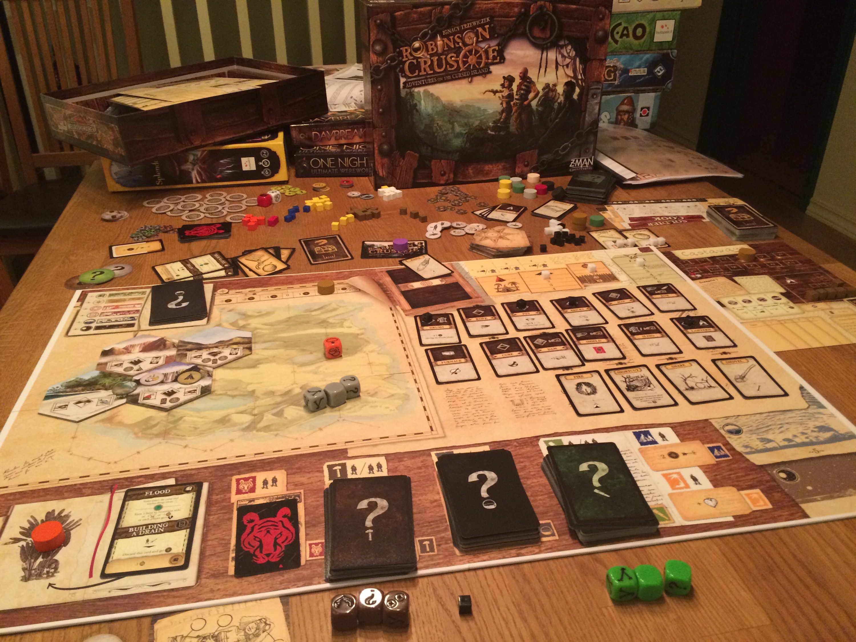 Dagen etterpå spilte Oscar og Hollender samarbeidsspillet Robinson Crusoe. Hollender er ikke særlig glad i samarbeidsspill, men dette spillet er for ham et klart unntak. Spenning fra start til slutt. Hver runde er det mange utfordringer og hindringer og bålet som er redningen blir ikke tent før den siste runden. Det fungerte utmerket med to spillere og spilletiden er overkommelig. Dette kan anbefales!