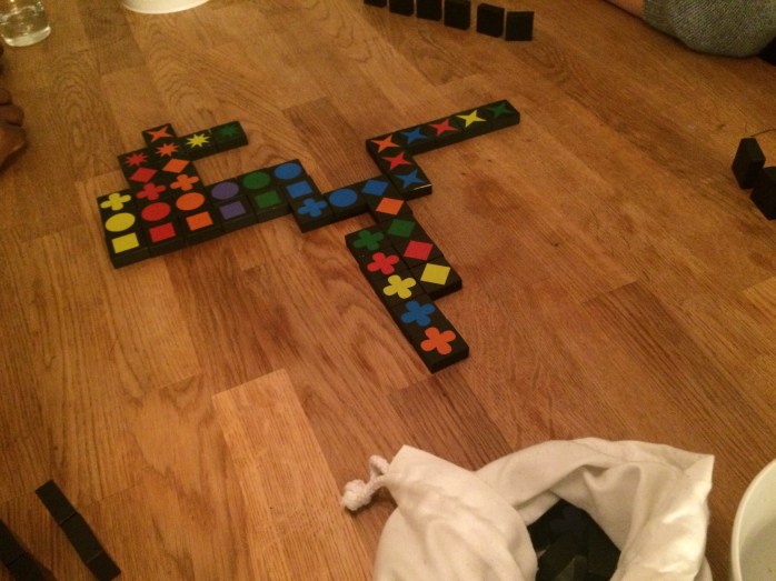 Siri, Erika, Ibrahim og Noorullah spilte Qwirkle. Det gikk litt i surr for Ibrahim med like symboler og ulike farger, samme farge med ulike symboler. Men han gjorde sitt beste! Noorullah hadde forstått det bedre og tok så sin første seier i PG.