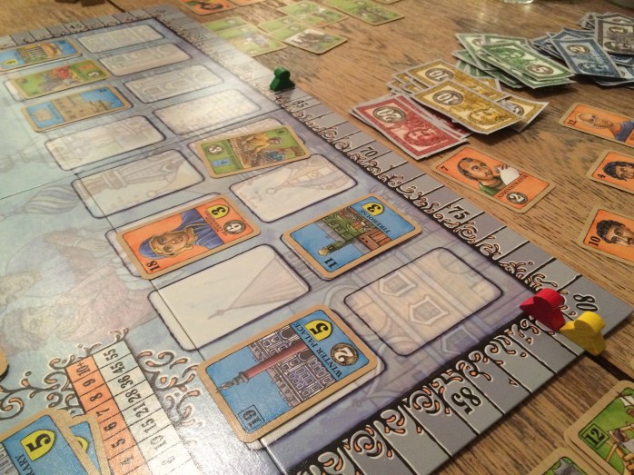 Tone, Kate og Linnea begynte med Fresco som Tone hadde skaffet seg i Haugesund. Det ble litt regellesing, men Fresco er lett å spille. Å stå opp tidlig er mest attraktiv, men det koster mer. Å stå opp sent er mindre kostbart, men man kan komme for sent. Damene koste seg med spillet og det fine takmaleriet ble stadig mer synlig. Det hele ble en spennende telling hvor Linnea vant med mye jubel! Kjekt å med engasjerte spillere!