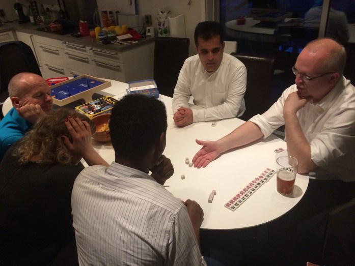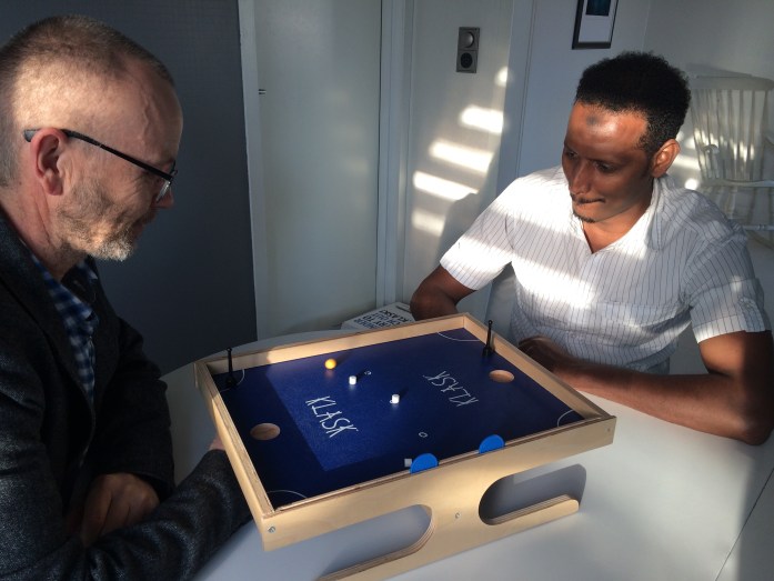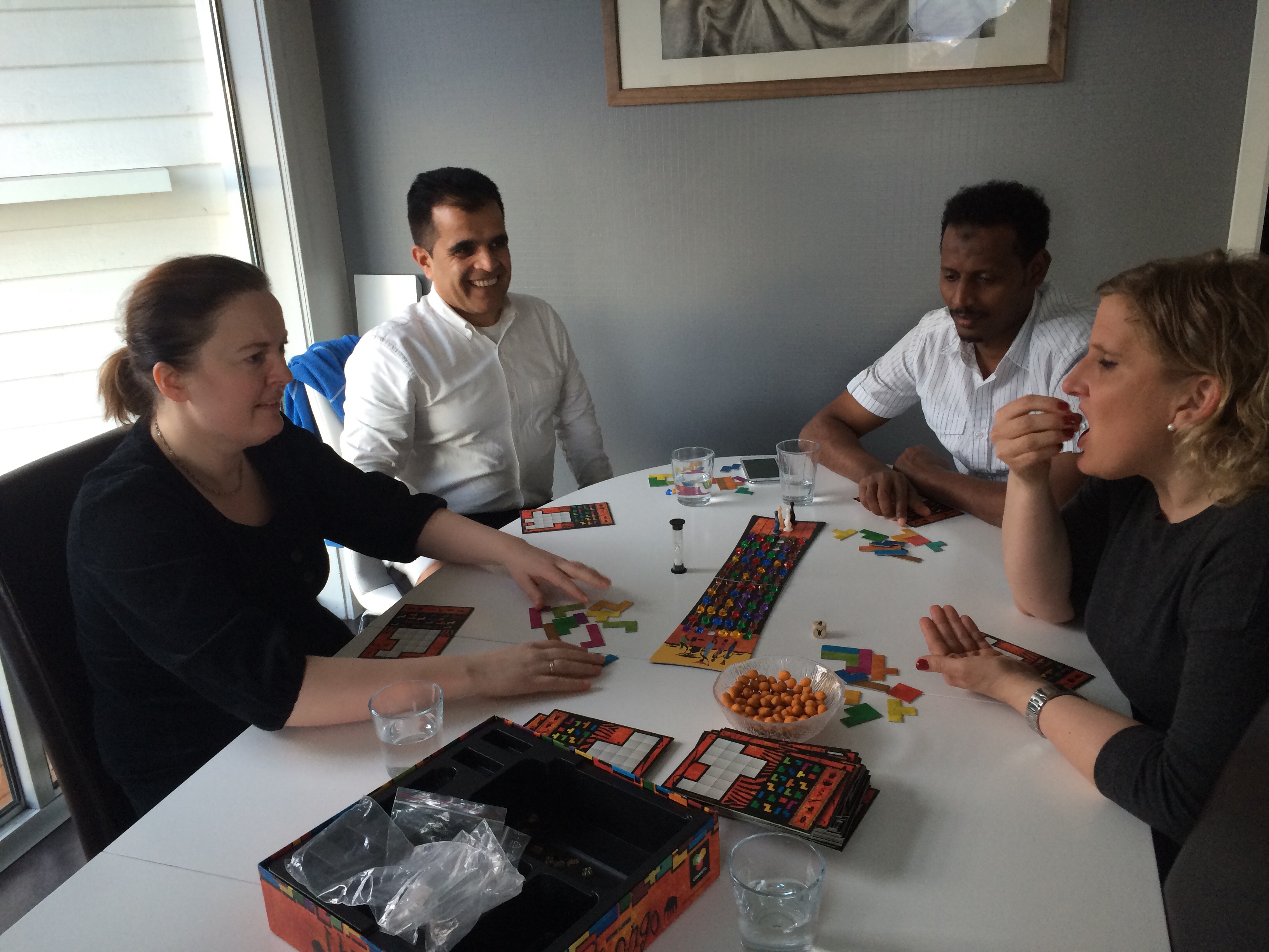 På kjøkkenet hadde Hollender fått våre nye landsmenn, Noorullah og Ibrahim med i en runde med ubongo. Hollender spilte med 4-er siden, mens de andre to brukte 3-er siden. De fikk etter hvert bedre fatt på spillet, men Hollender var så rask ferdig at han hadde også tid til å ta bilder. Kate og Tone kom inn for Hollender og nå klarte Noorullah å slå til og vant den andre omgangen.