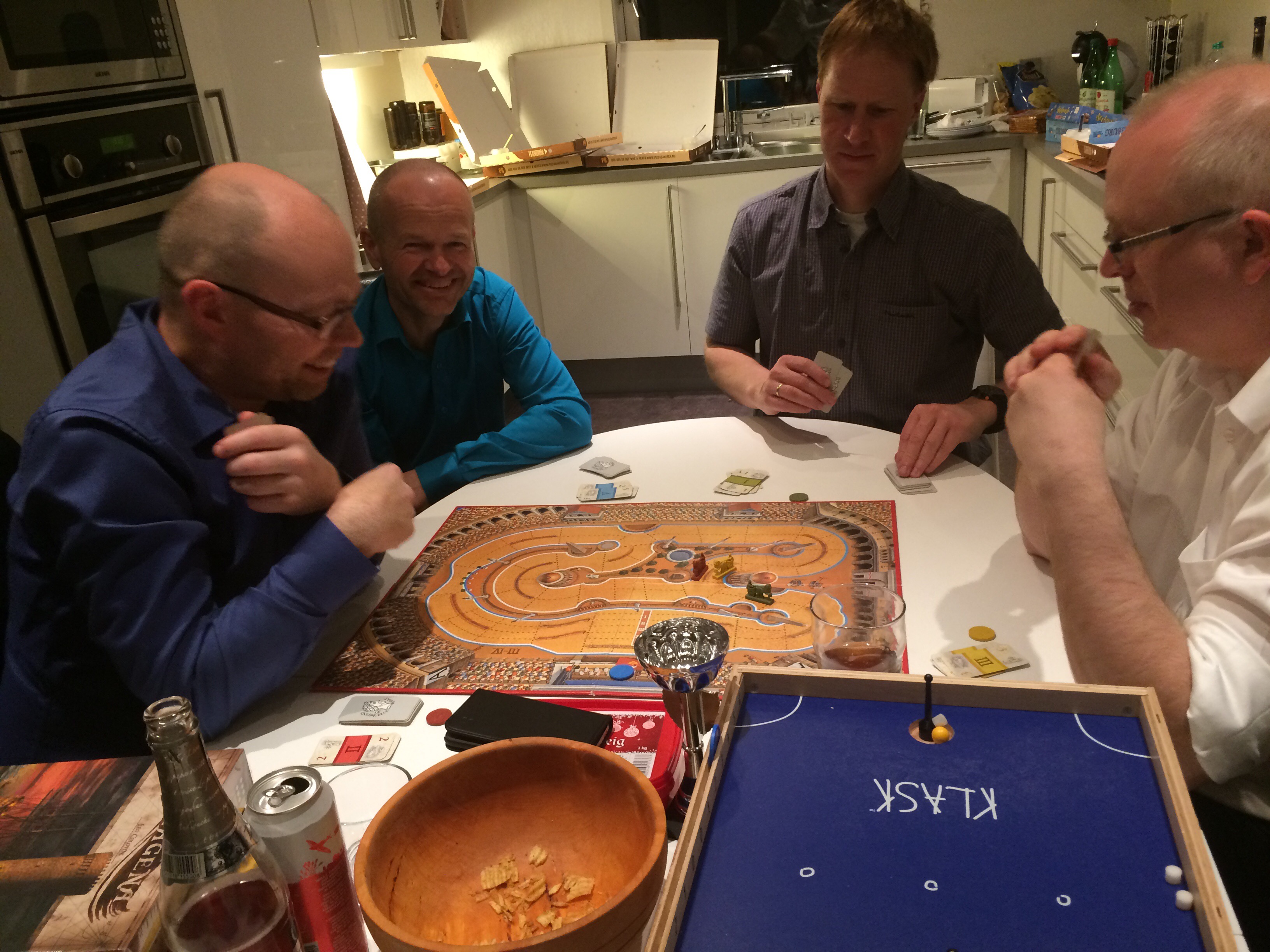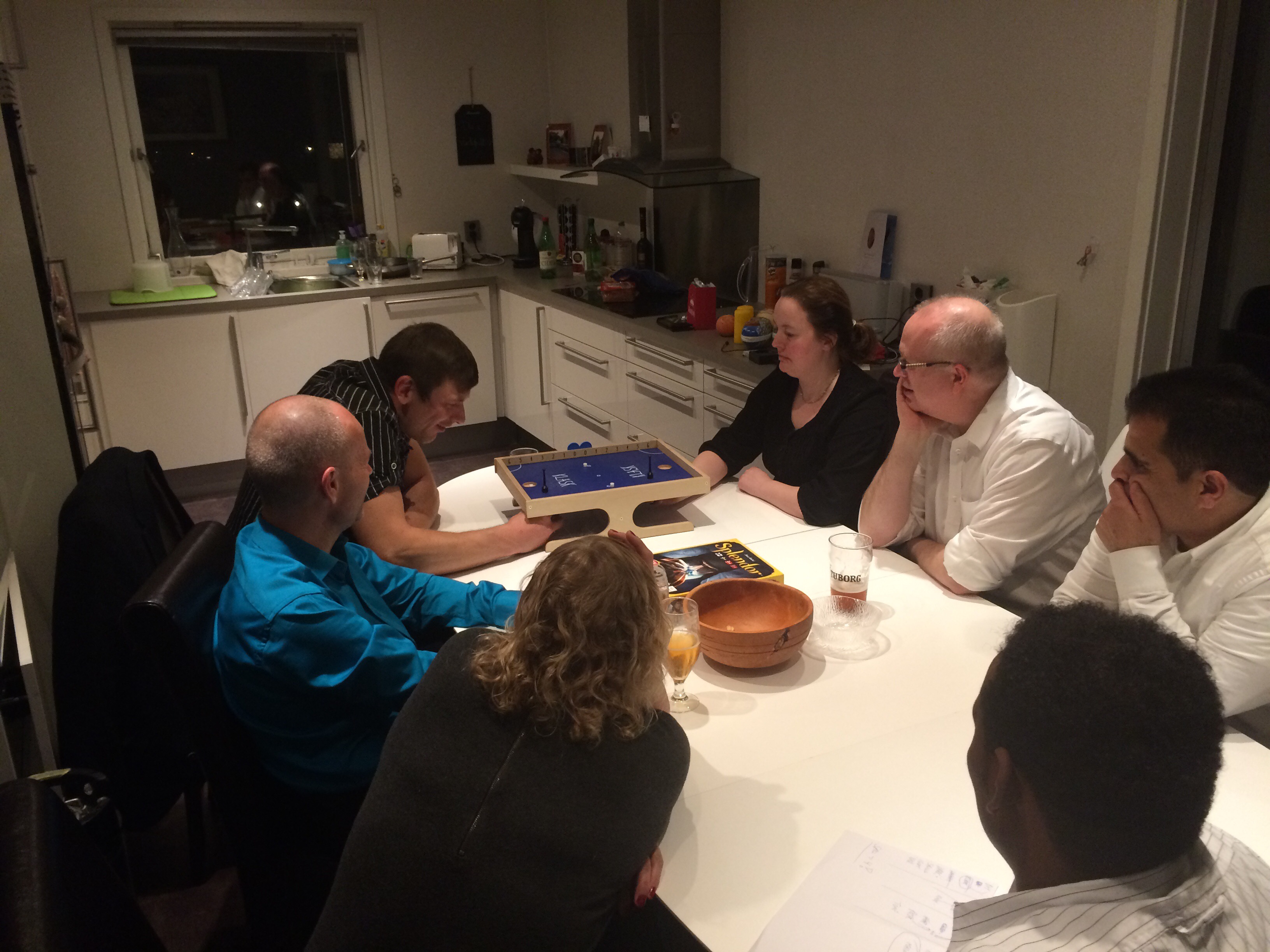 Splendor er trolig årets spill i PG. Mange har spilt det og mange liker det godt! Tone hadde øvd hjemme med sin datter og var klar til å vise sine trente takter. Noorullah og Ibrahim liker godt spill uten tekst og spilte kjapt. Hollender fikk hard motstand, men viste at han behersket Splendor bedre enn Klask og vant i god tid før de andre kunne nå minst 15.