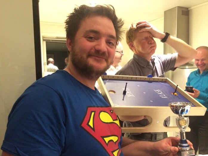 Sveinmain slo Robert og Peter ble slått av en seig Pift. Det ble en finale mellom to gode bordfotballspillere. Sveinmain hadde nylig kvalifisert seg til bordishockey NM og trodde han hadde seieren i lomma mot Pift. men Pift spilte rolig og la presset hele tiden hos Sveinmain ved å få de små magnetene over på hans side. Pift tok en fortjent seier etter en sterk turnering hvor klubben fikk en verdig vinner og Klask mer enn bare en gang innfridde. Løp og kjøp! Kåre gjorde det dagen derpå.