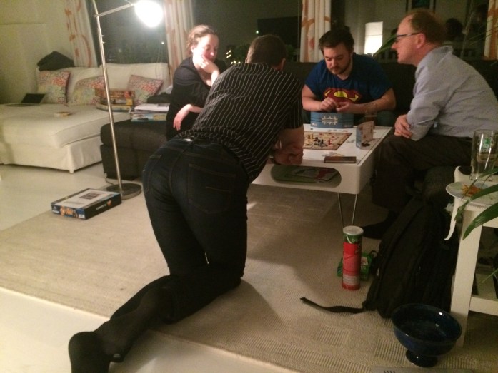 Kåre hadde tatt med seg spillet De Vulgari Eloquenta. Som i de føeste spill som Kåre liker, var temaet godt representert. Dialekter, språk, manuskripter og andre litterære begrep ble hørt på nabobordet. En annen faktor som vi kjenner fra slike spill er at de kan ta tid. Men det visste ikke Pift, Saulius, Kate og Knut. Spillet fikk noen pauser i forbindelse med den pågående turneringen, pizza og awaards. Likevel tok det tid, såpass mye at Knut ikke kunne vinne og måtte trekke seg halvveis i spillet. Dette ble kveldens desidert lengste spill, mend et så ut som om alle koste seg. Kåre vant til slutt (eller de andre lot ham vinne).