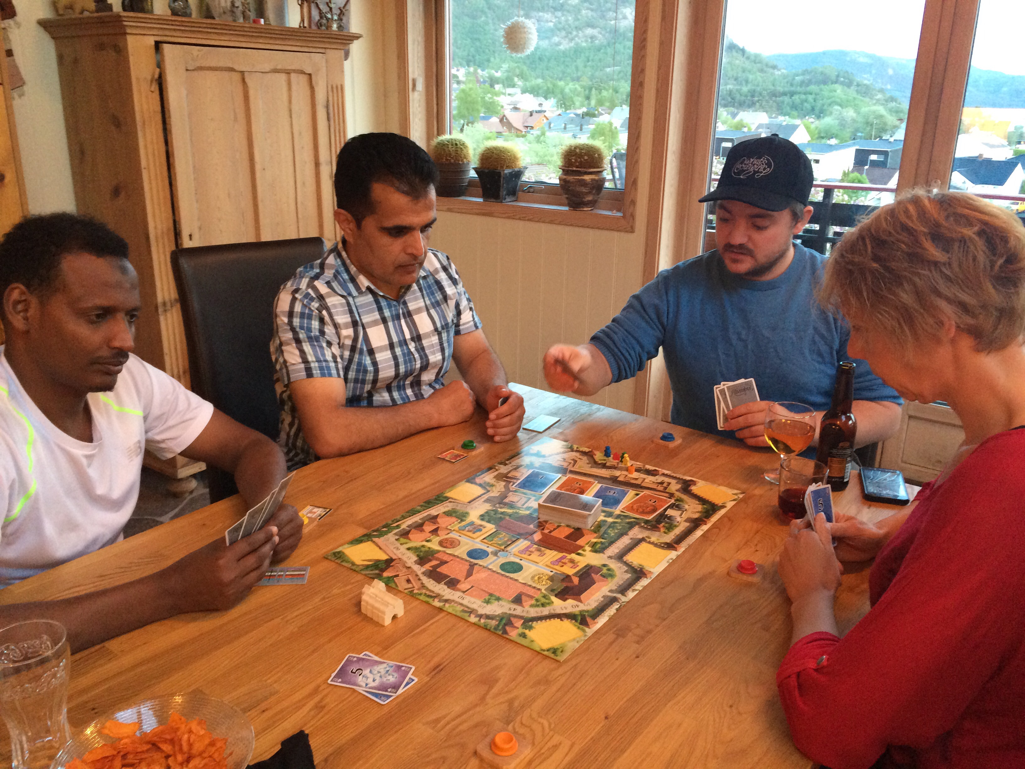 På den andre enden av bordet ble det spilt Carcassonne. For Ibrahim og Noorullah var det første gang, men begge klarte seg bra. De klarte ikke å slå Siri i den første runden, men i runde nummer to seiret Noorullah.