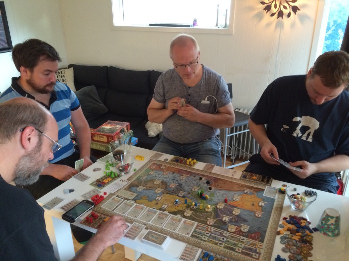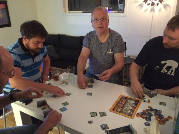 annen går penge til ham, slik at han har mulighet til å kjøpe noe denne runden eller neste runde. Med de kjøpte brikkene bygger man et rike hvor man kan sanke poeng på forskjellige måter. Vegard vant med noen poeng forsprang på Hollender og Peter. Alle unntatt Peter likte spillet og kan spille det igjen.