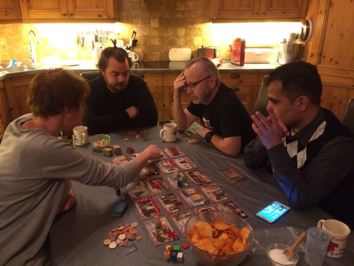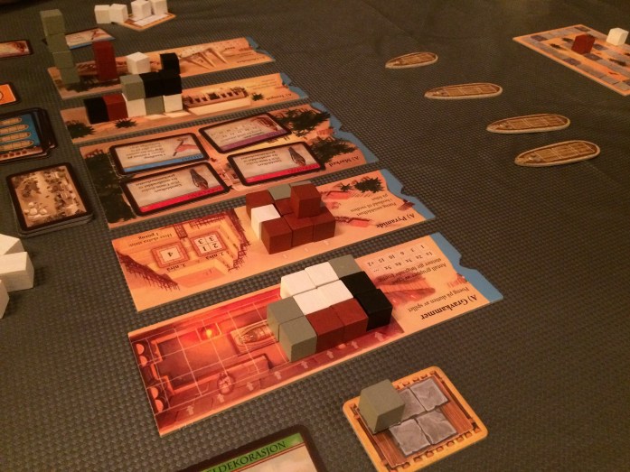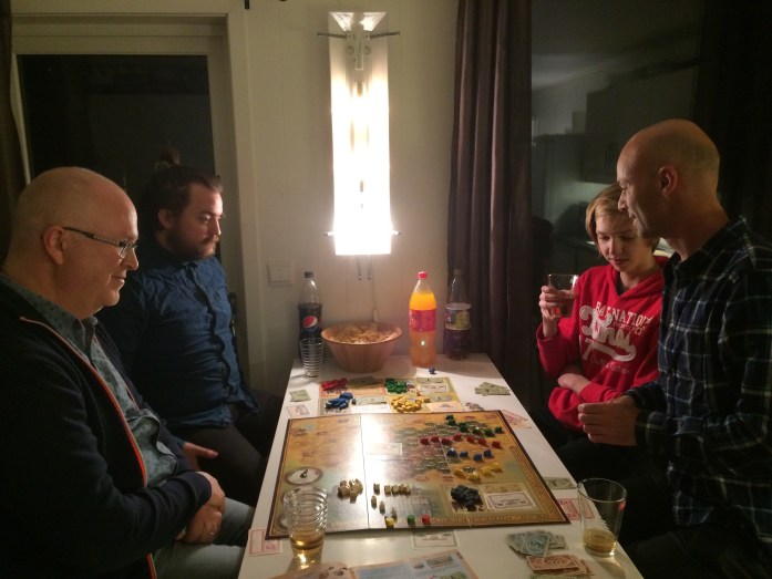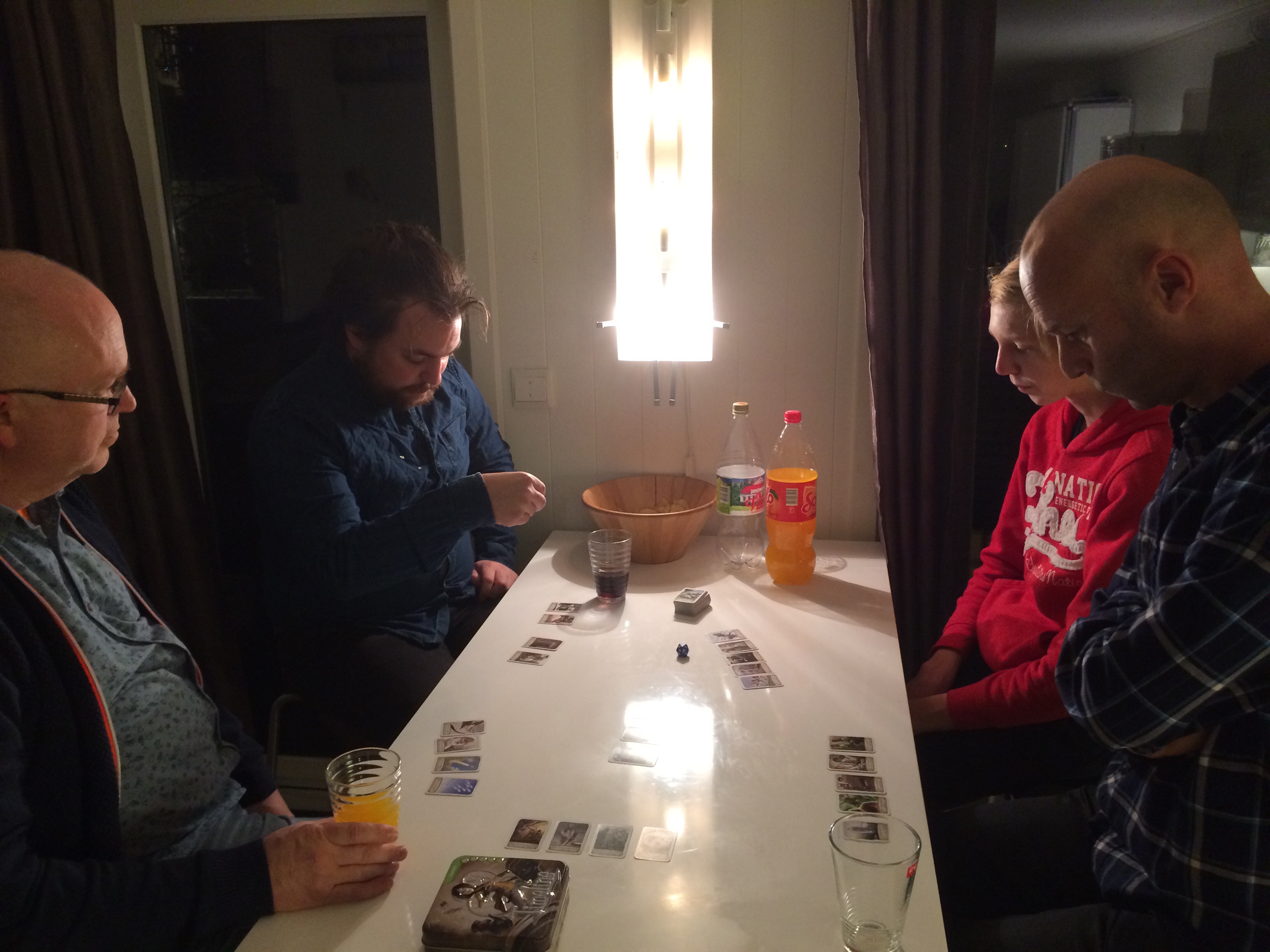 Imhoteb er et lettspilt familiespill. Velg en av fire handlinger og poengsystemet er ganske oversiktlig. Dessuten ser spillet flott ut. Noorullah vant denne gangen,Istanbul har blit en klassiker i PG.Mange liker spillet og det passer godt med 3, 4 og 5 spillere. Her ble Istanbul kombinert med den andre utvidelsen. Brev er en ny måte å samle rubiner med. Ellers ble det satt pris på en ekstra venn som kan utfører handlinger. Knut var første mann til 5 rubiner.Hollender og Pift spilte Dormus som 2-player. Det fungerte godt. Et taktisk spill med lett mekanisme.Lørdagskveld hos Pift. Oscar, Bård, Peter, Pift og Hollender starter med Chicago Express.Mye utbygging! Peter spilte med funkenschlagtaktikk, Det vil si, vente lenge med å kjøpe aksjer og slå til når andre er nesten blakke. Men Peter hadde undervurdert Oscar som drev prisen så høyt opp at Peter måtte vente lenge på sin første aksje. Oscar fikk nå god utbetaling og mer penger holdte prisene høye. Oscar vant fortjent med en liten forsprang på Bård. Det ser ut at auksjonsspill har nådd nye høyder i PG.Vakre komponenter og et spill som virket godt.Peter prøver seg nok en gang på auksjon, men Oscar slo ham igjen.Timelines er også godt likt i PG. Bård vant.Hvor skal dette kortet plasseres?Pift tok revansj i Dormus og slo Hollender og Petet med klar margin.