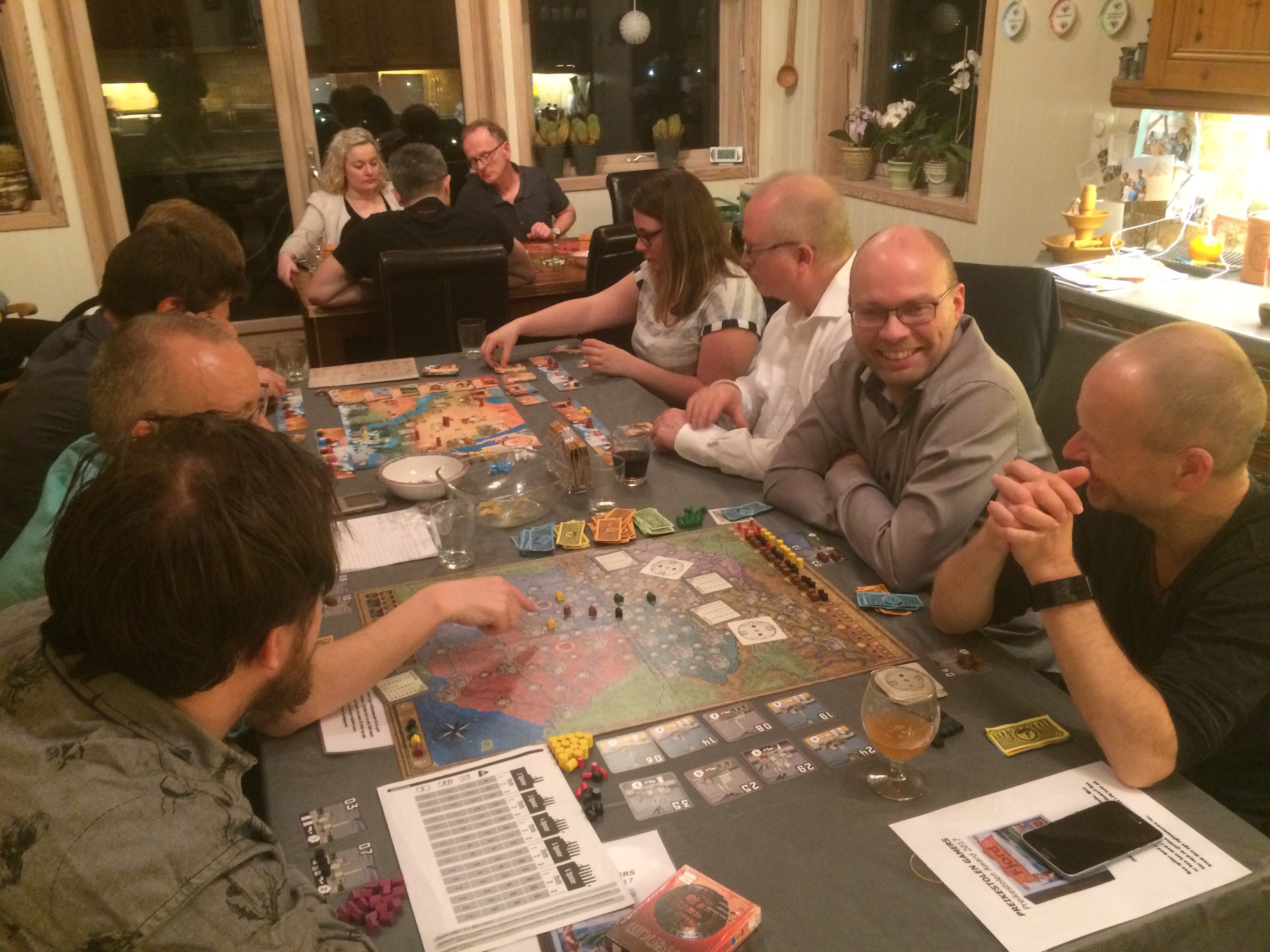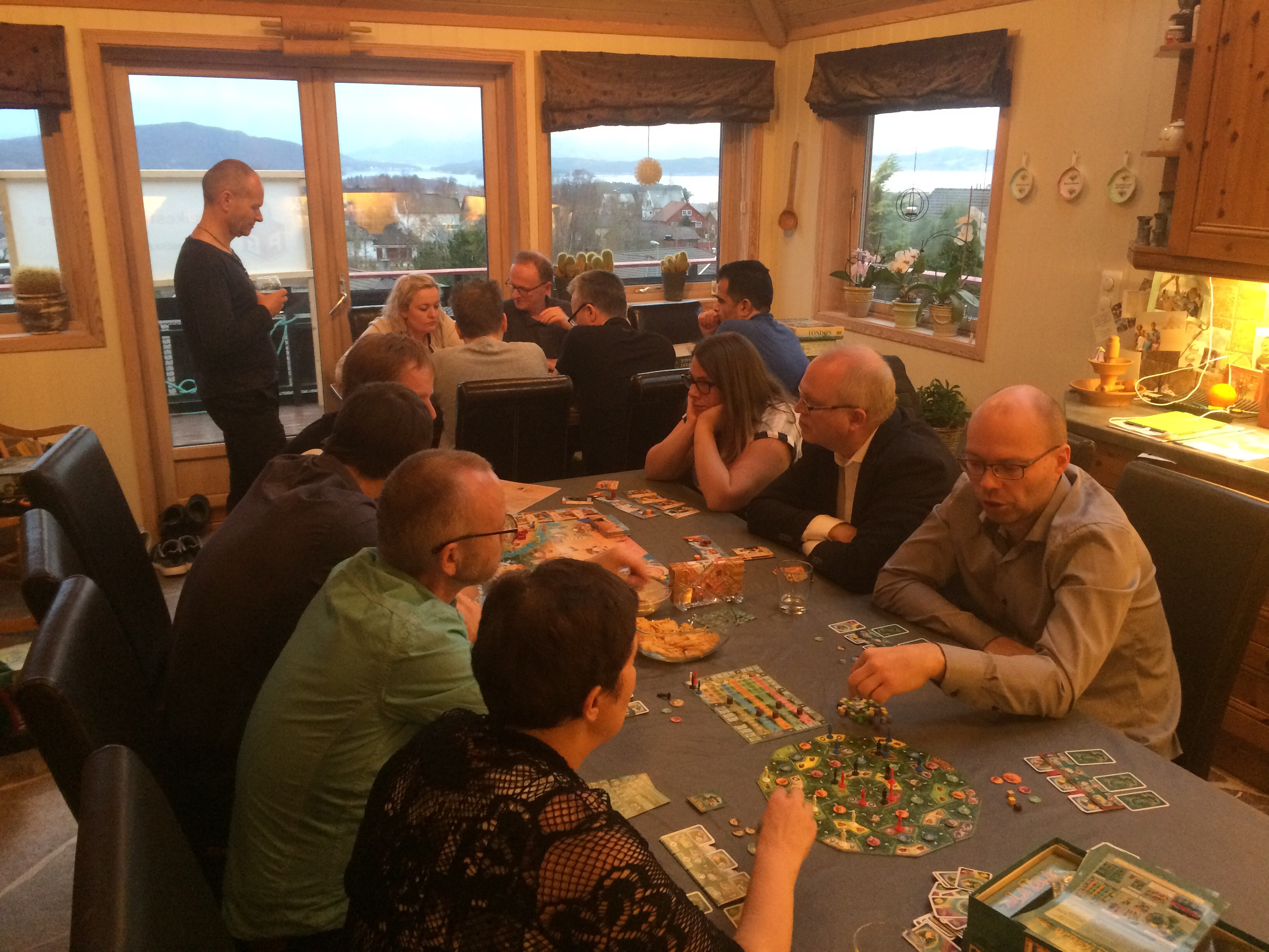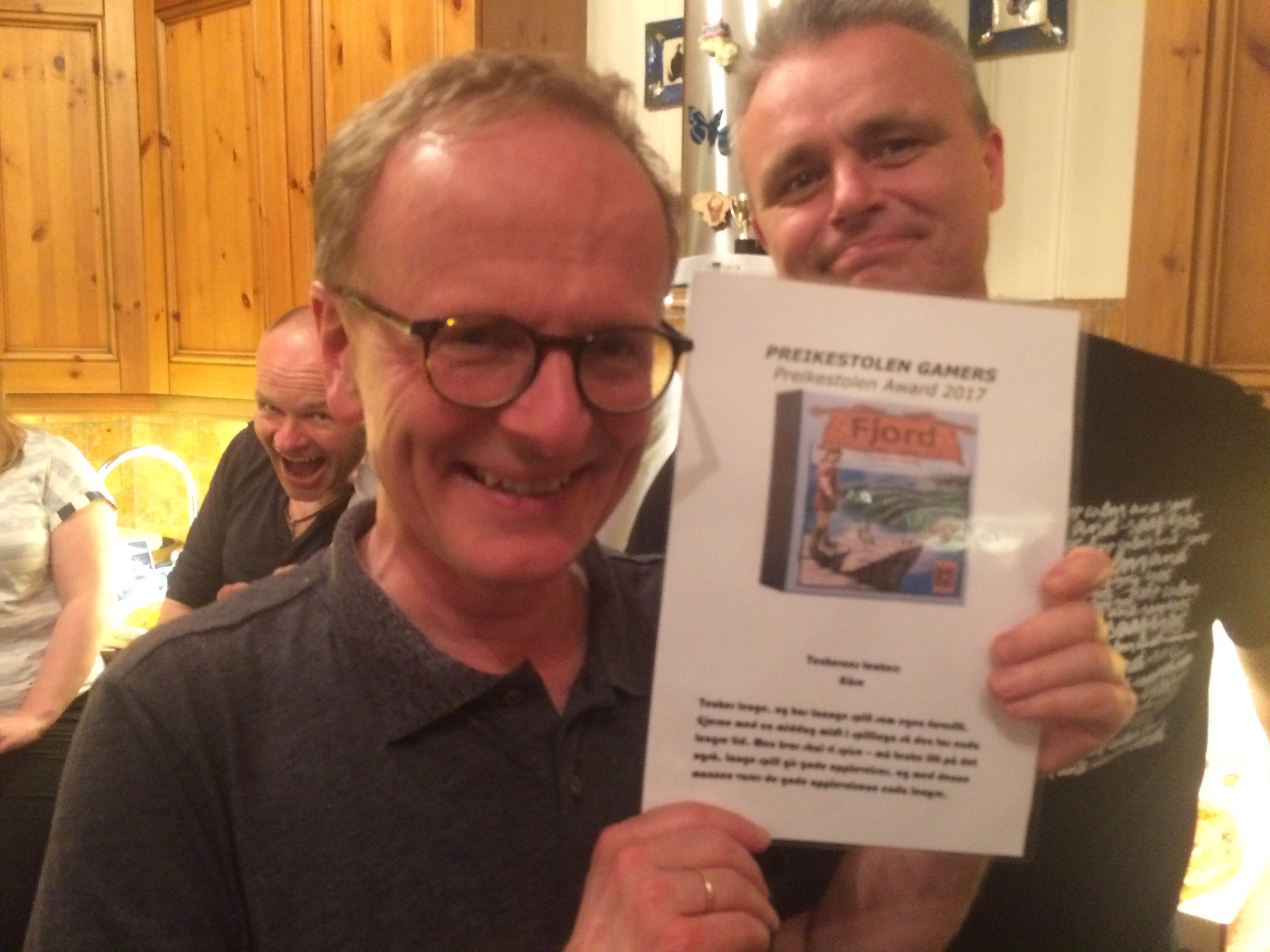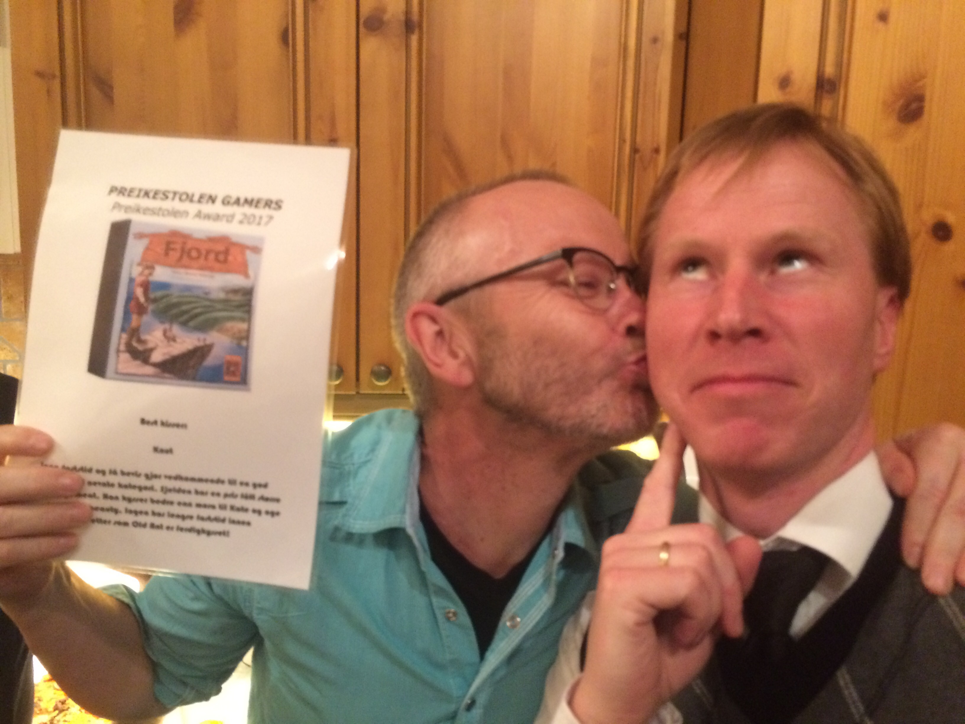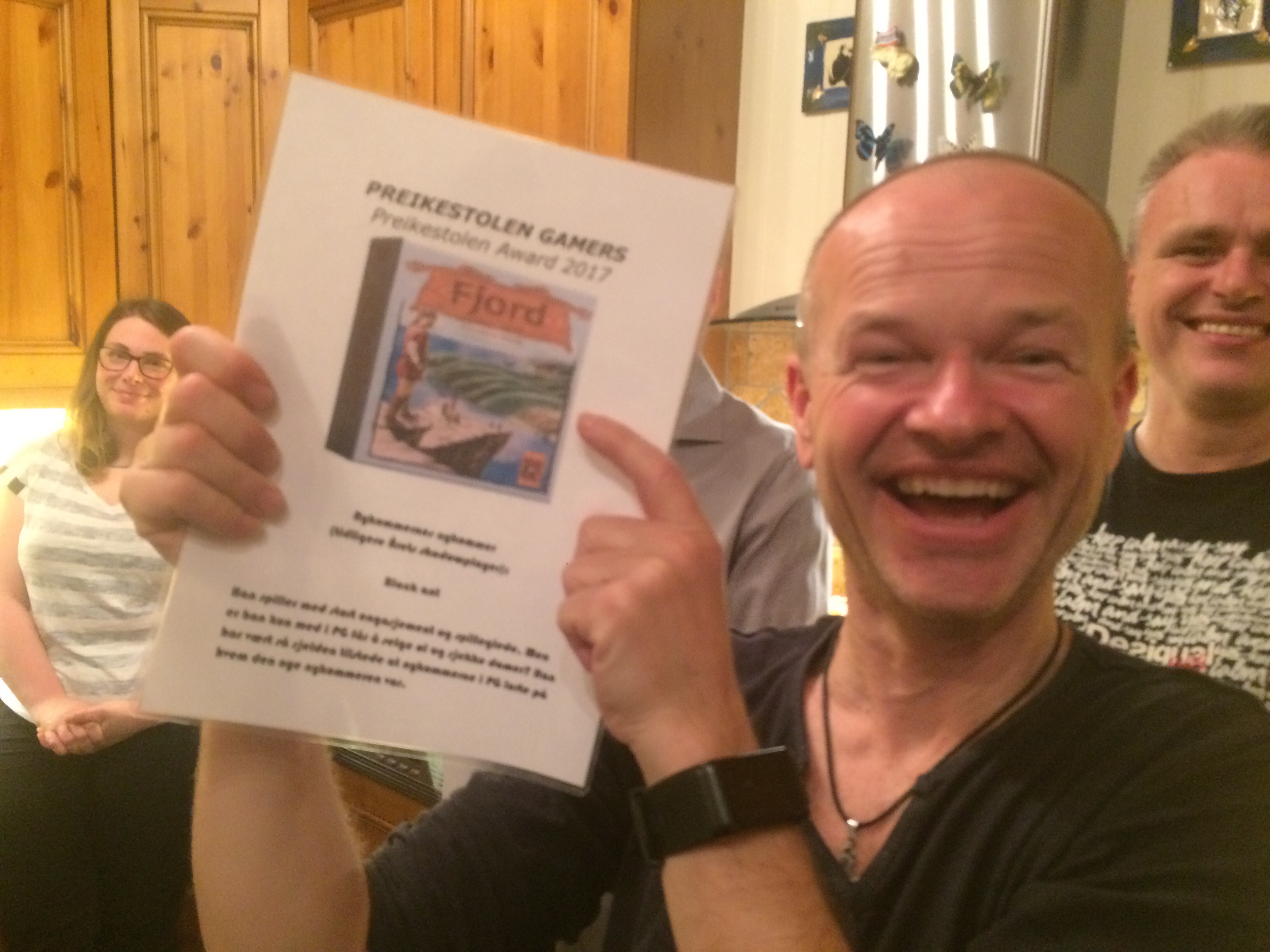 PG Galla er et av de mange årlige høydepunkt i brettspillbyen Jørpeland. Som eneste brettspillklubb i Norge blir det delt ut ekte awards.La Isla: lett å lære og lett å spille. Hollender vant like før Robert, Wenche og Knut.Sveinmain hadde forberedt Lewis&Clark. Fragerikt og underholdende. De tok noen timer hvor Sveinmain vant til slutt.North West Passage: Kim vant før Kate, Kåre og Rune.Sjoelbak: Noorrullah var best med 96 poeng.Norges Mester i Isle of Skye, Robert, fikk prisen for PGs beste turneringsspiller.Årets mest uadskillelige par! Robert og Sveinmain spiller aldri uten at den faste spillpartneren er med. Mange lurer på hvor langt dette partnerskapet går…..PG Mester i sjoelbak 2017, Noorrullah.Årets PG Award vinnere.Der Untergang von Pompeje er fortsatt godt likt. Hollender vant knepent.Årets «kisser» Knut from Downland med Sveinmain som kyndig jurymedlem.Svært mange var nominert men Årets Tenker ble Kåre! Han spiller ofte spill som kan minst 5 timer. Når andre sovner slår han til!Årets nykommer ble Black Ant. 15 års medlemskap holder ikke når man møter en meget sjelden gang.PGs beste seniorspiller be Wenche.Det alltid morsomme Colt Express.Mye aktivitet! Funkenschlag har allerede vart i to timer og stufe2 er fortsatt ikke påbegynt.Det morsomme press your luck spillet, the boss. Peter var best eller mest heldig?!Funkenschag, Lewis&Clark og Myrmes blir spilt med innsats og glede.