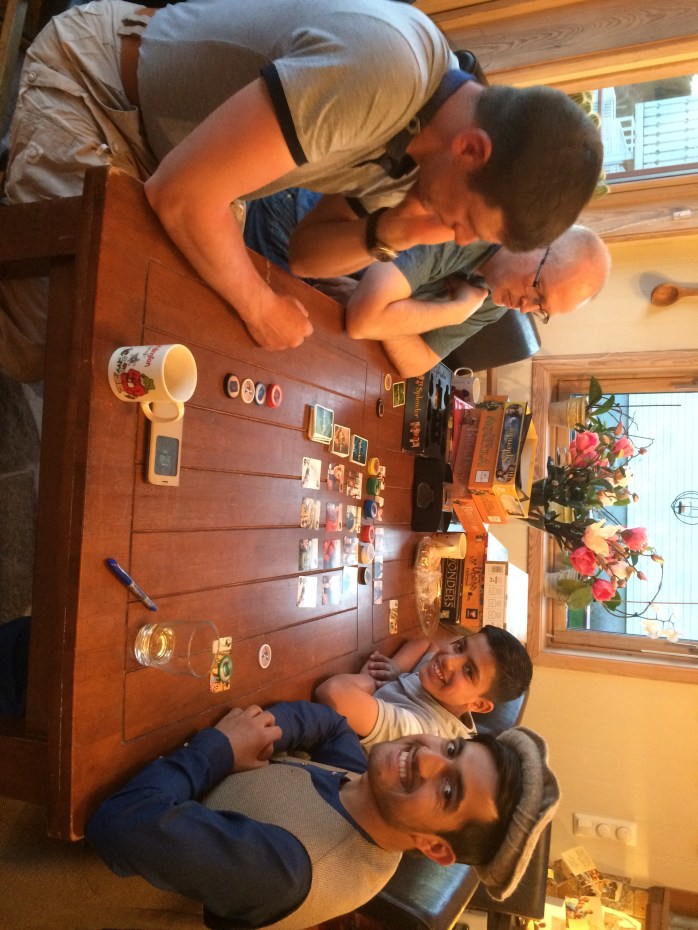Alhambra er en klassiker og et veldig bra språknøytralt spill.Bruges spilles lett og trenger litt planlegging.Best dressed gamer!Mange valg i Bruges, så lenge man ikke venter på den ene kanalutbyggingen.Hollender vant foran Vegard (som aldri fikk bygget den siste kanalbiten), Peter og Saulius på delt 3.plass)Splendor. Saulius vant til slutt men slet lenge mot ungguttene og han gamle.Agricola på norsk! Vi spilte med kort som gav flere valg og av og til også noe fristrasjon.Flotte komponenter i denne norske versjonen.Hollenders brettAgricola. Hollender vant med 43, Peter 40, Saulius og Vegard (23 og 21)Klask: alltid gøy!