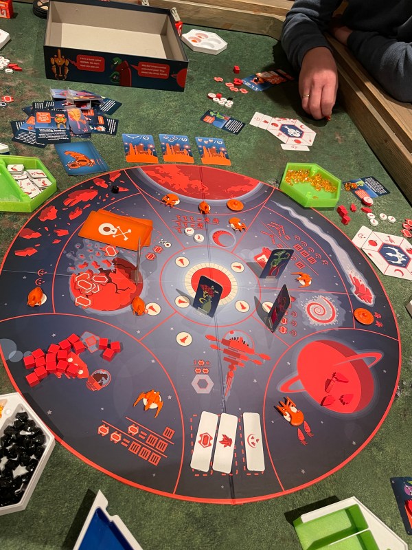 Her skal du veldig enkelt sette ut et romskip og ta det som står på plassen, eller ta tilbake alle romskipene dine. Ingen avanserte greit. Få ressurs av en type. Få en ressurs av en annen type. Du kan bytte ressurs. Og så til slutt få poeng. Veldig kjappe valg. Ingen problem selv med mange spillere.