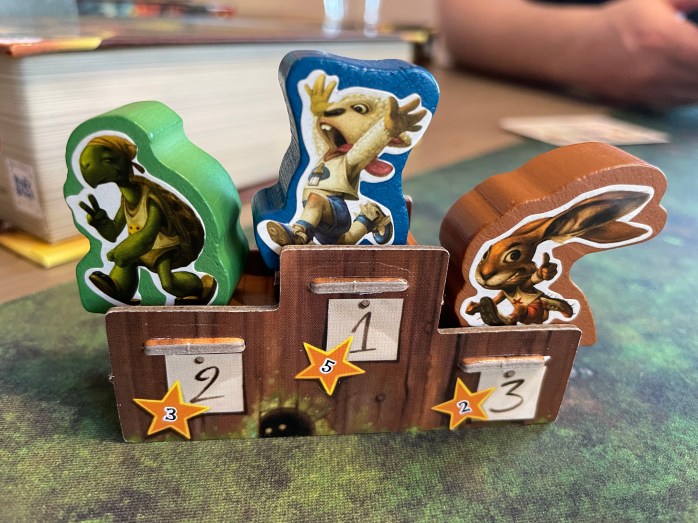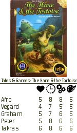 Peter var ennå på bussen, så vi begynte sette opp Tales & Games: The Hare & the Tortoise. I klassisk veddeløpsspill skal vi satse på en hest som skal vinne et race, og prøve å påvirke løpet etter best evne.