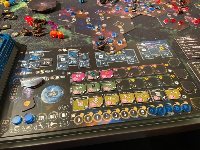 Alt koster penger og innkomsten kan økes ved å kontrollere deler av verdensrommet med dine brikker. Kjell Henrik rustet og rustet opp sine områder, Øystein fikk holde på mye for seg selv, men fikk etterhvert besøk av Sveinmain. Vegard og ikke minst Takras var konfliktsky og bygde seg inn i et hjørne så ingen kunne angripe han – og jeg som trodde Eclipse var et krigsspill…